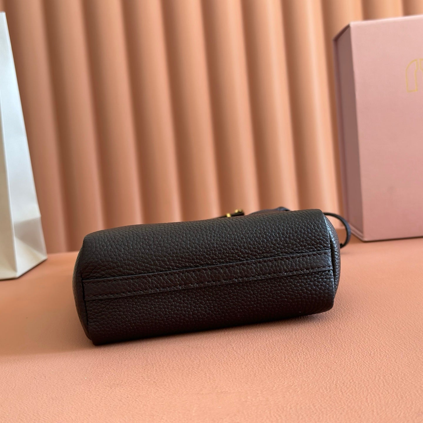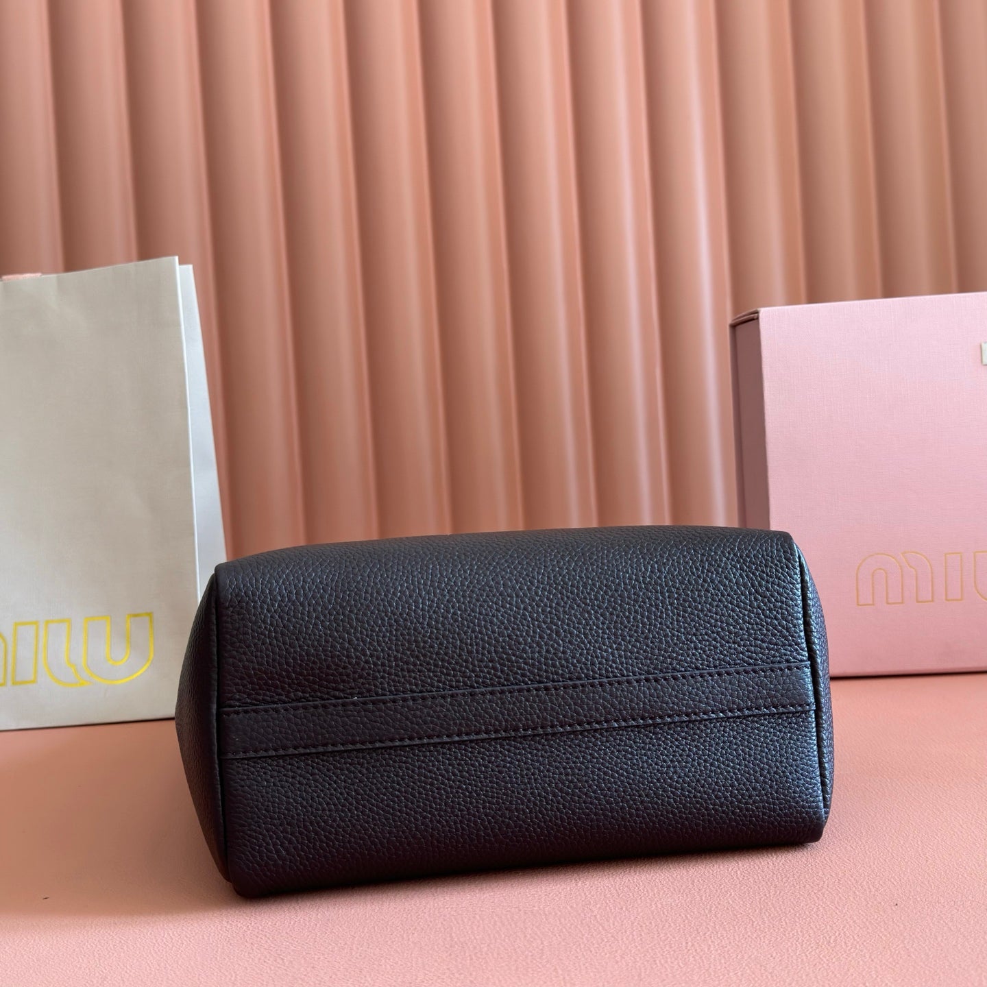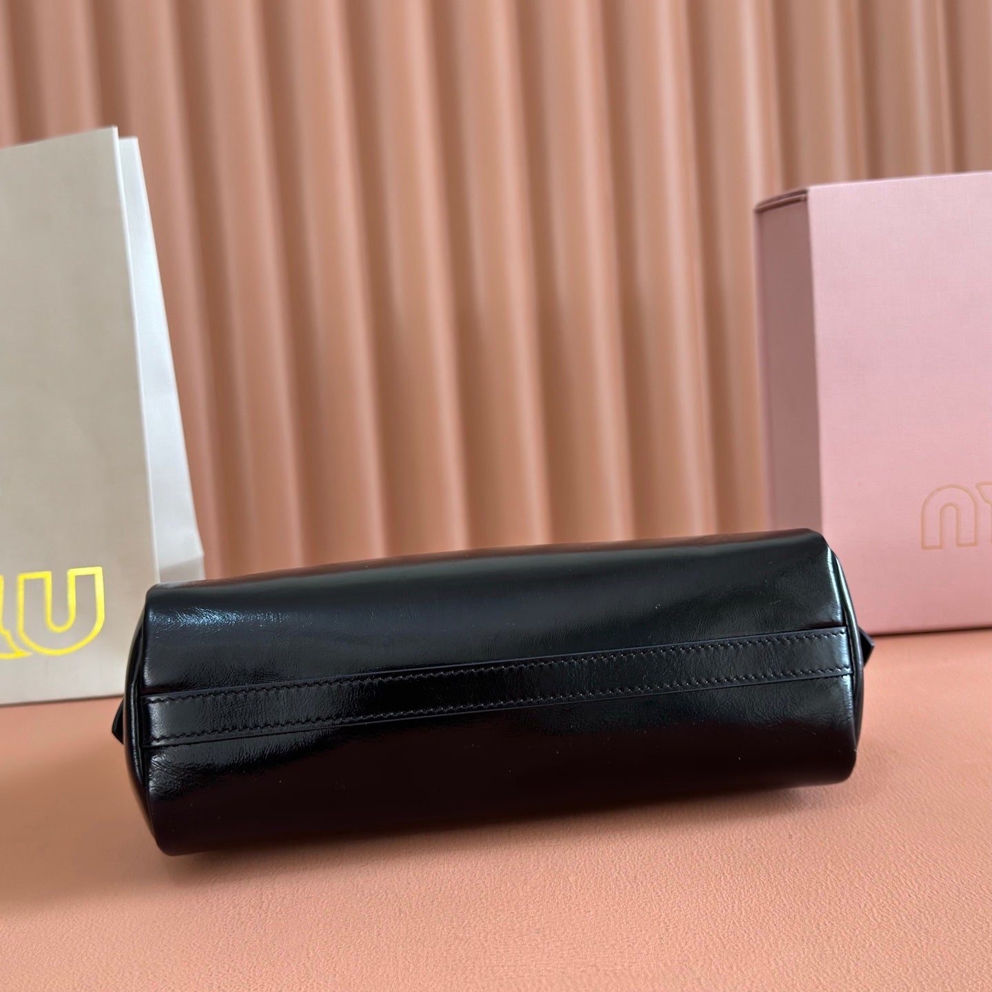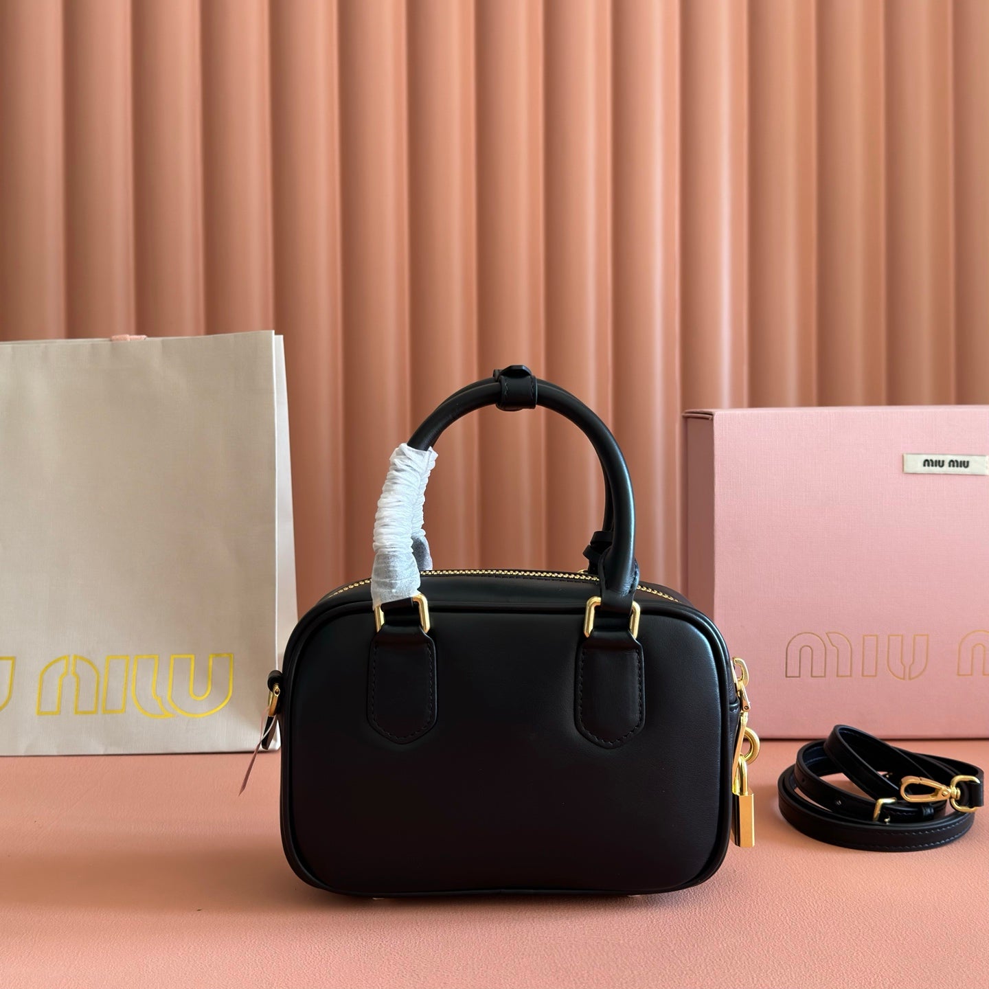 Miu Arcadie Small 19cm Bowling Handbag Black Cowhide 280989