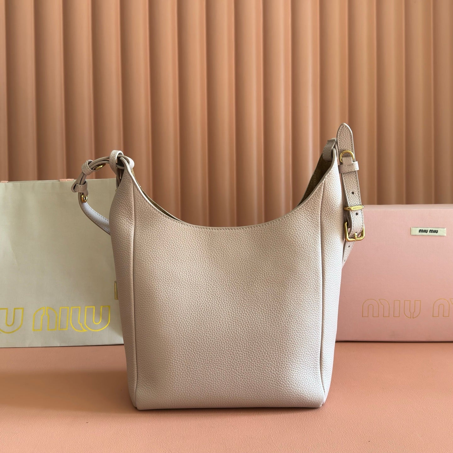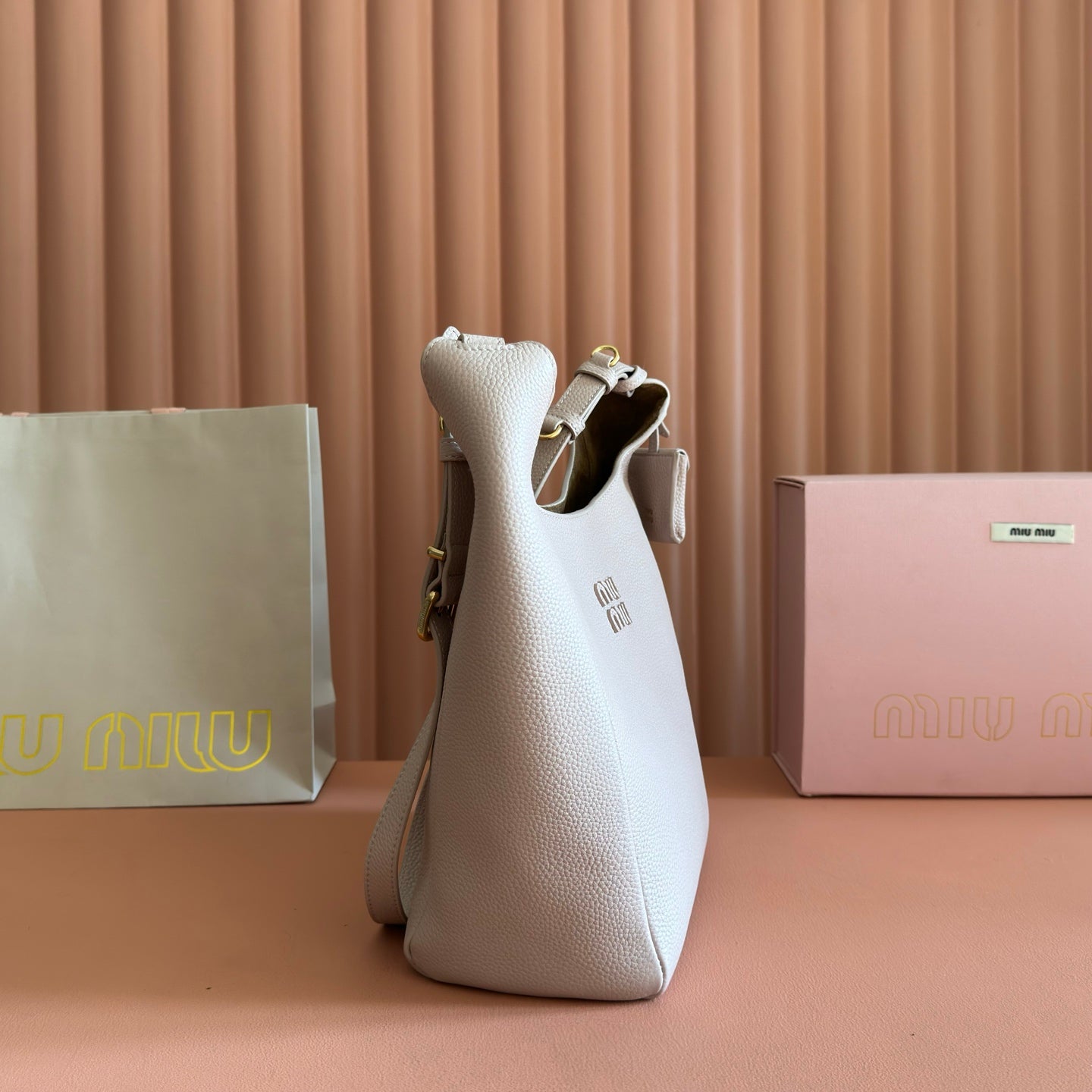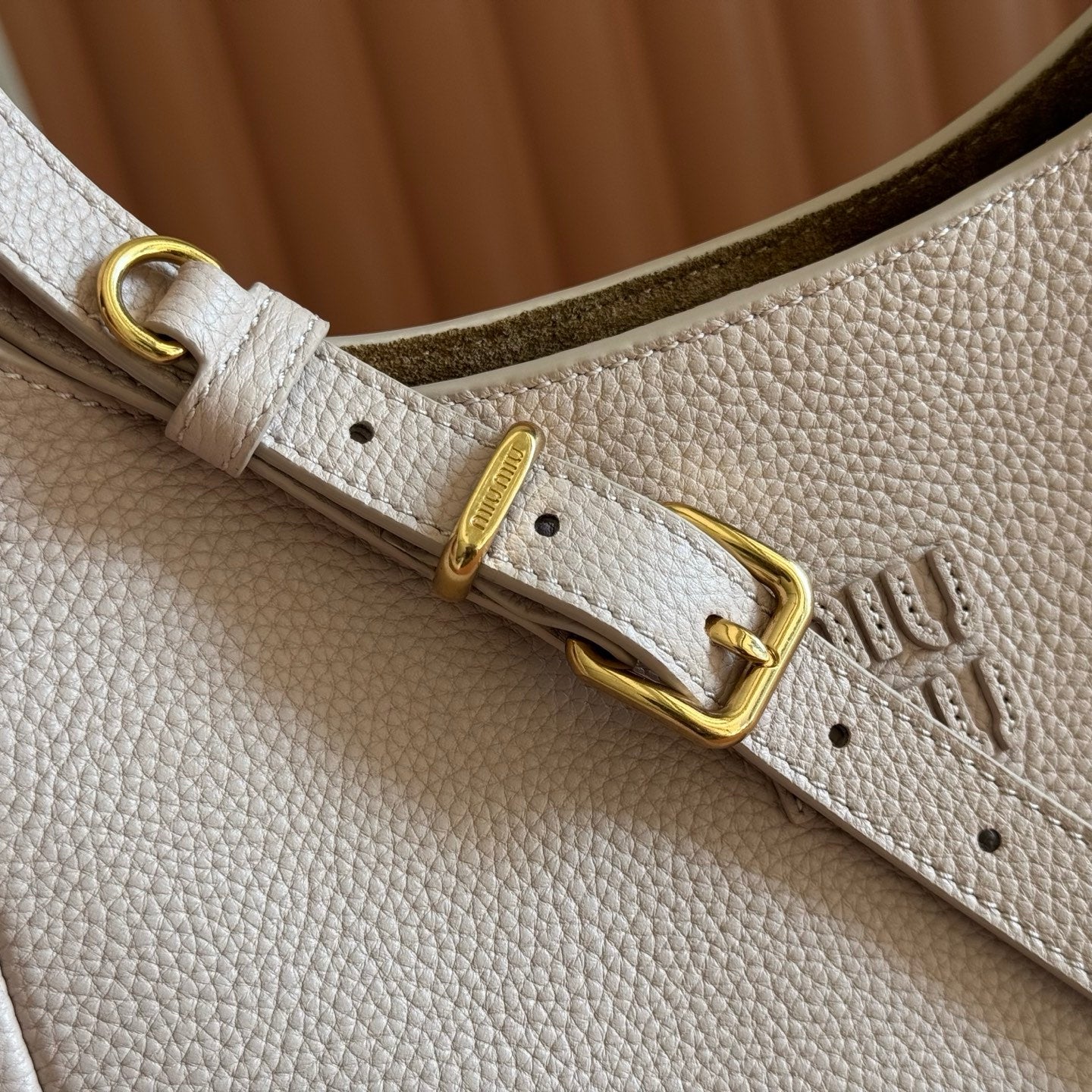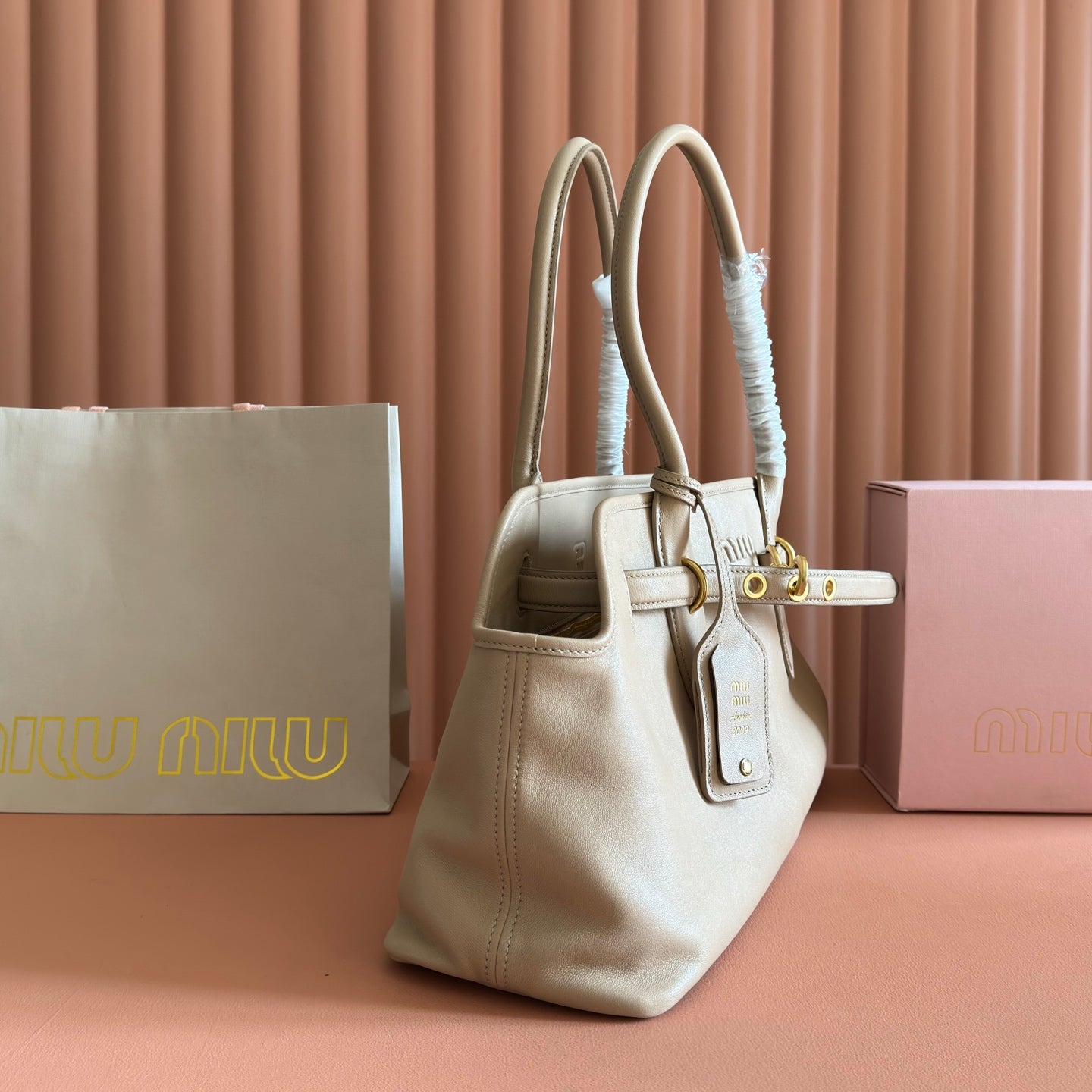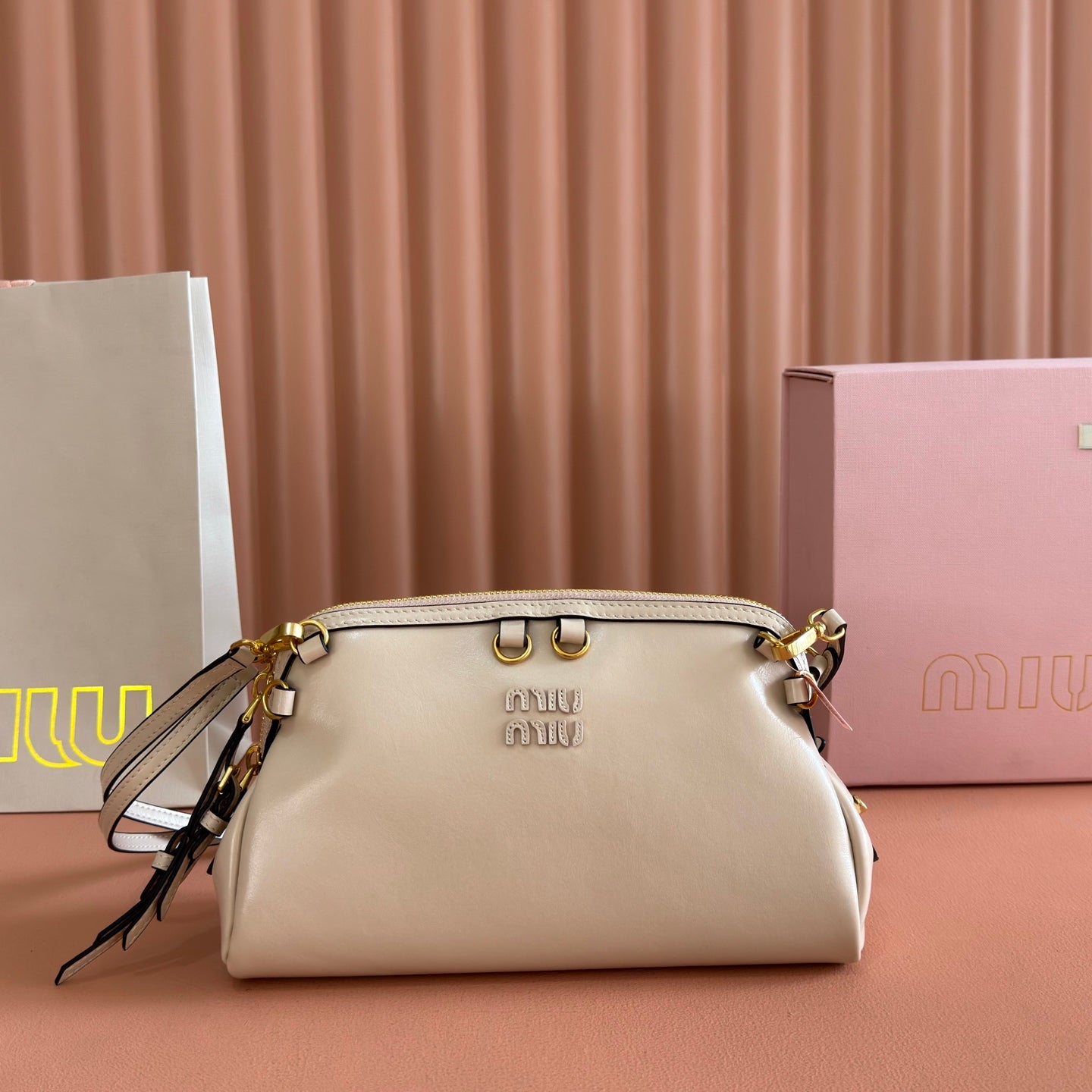 Miu Aventure Shoulder Bag 30cm Beige Nappa Leather