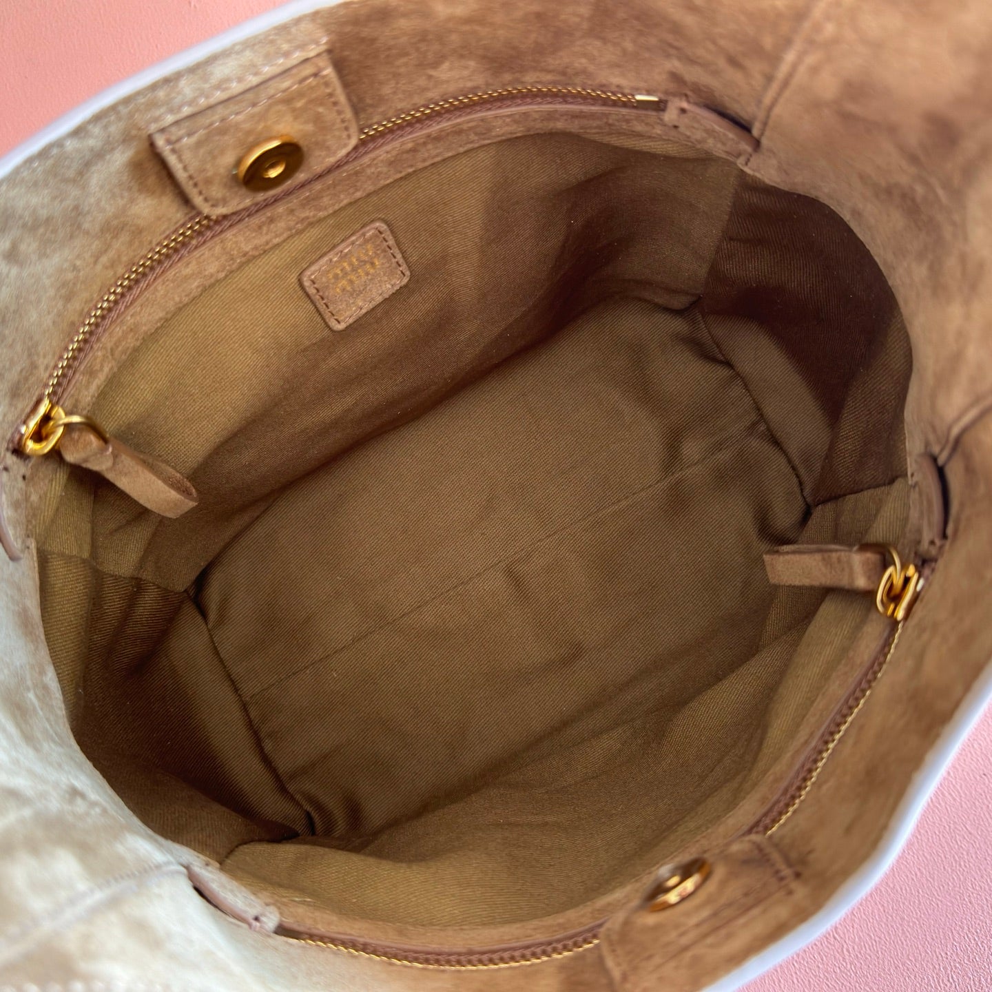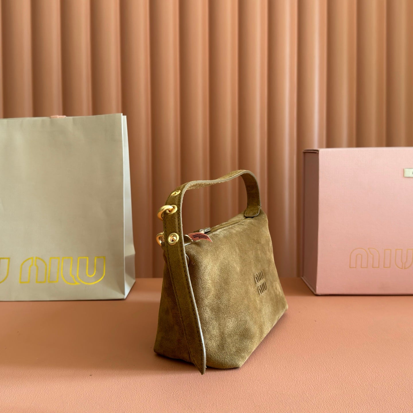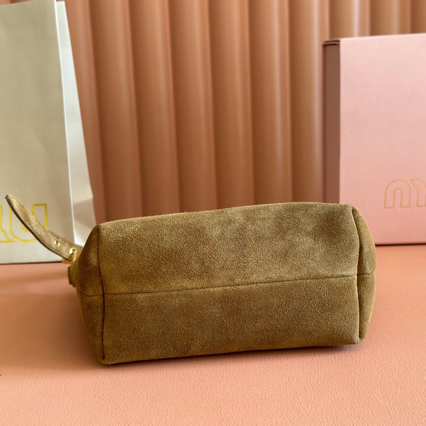 Miu 5NE841 Pouch Camel Suede 280987