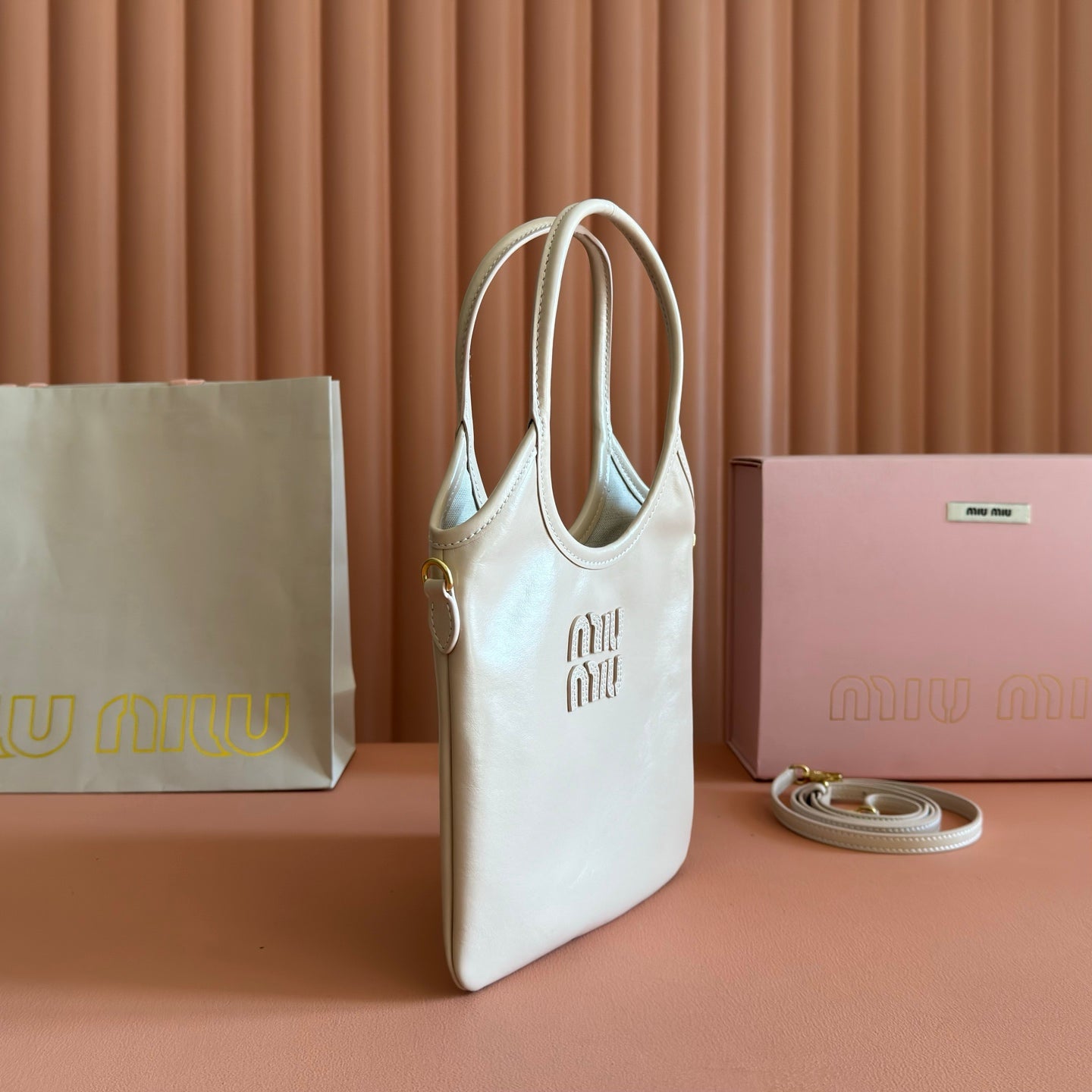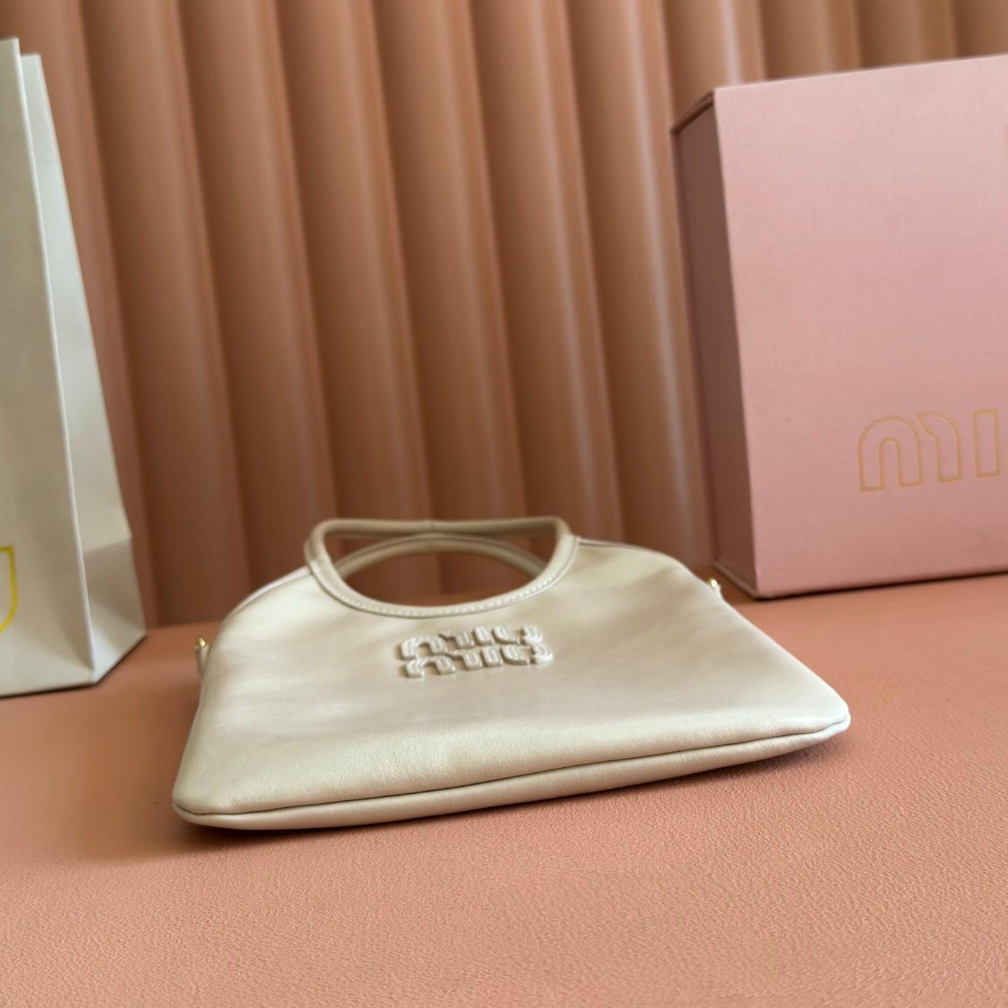 Miu IVY Handbag Light Beige Leather 280984