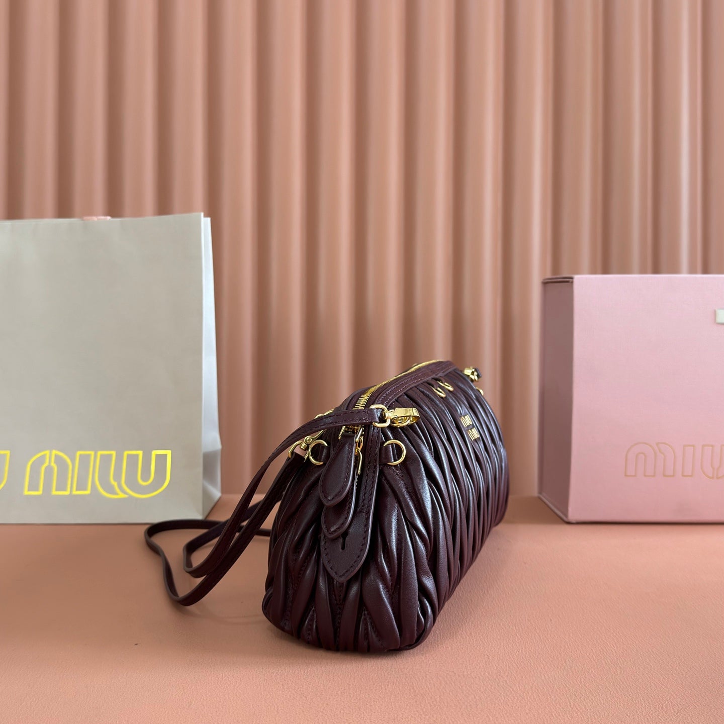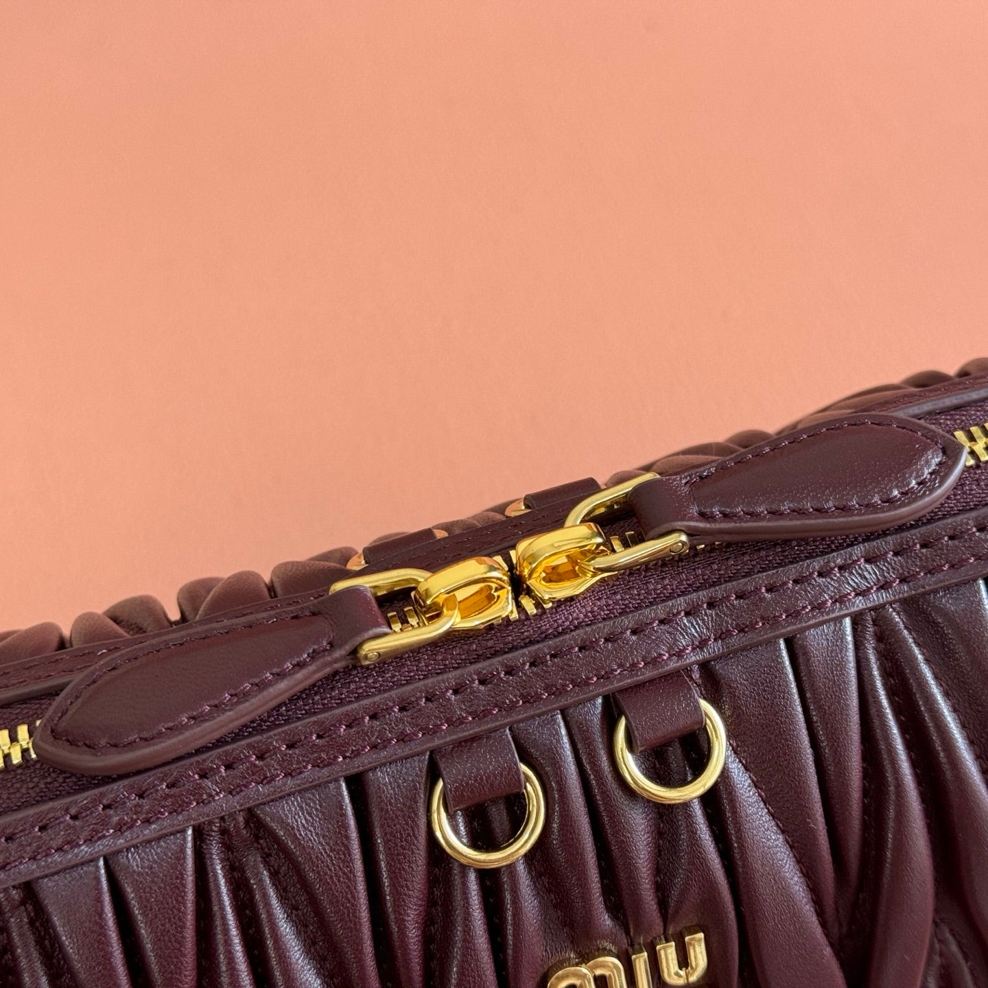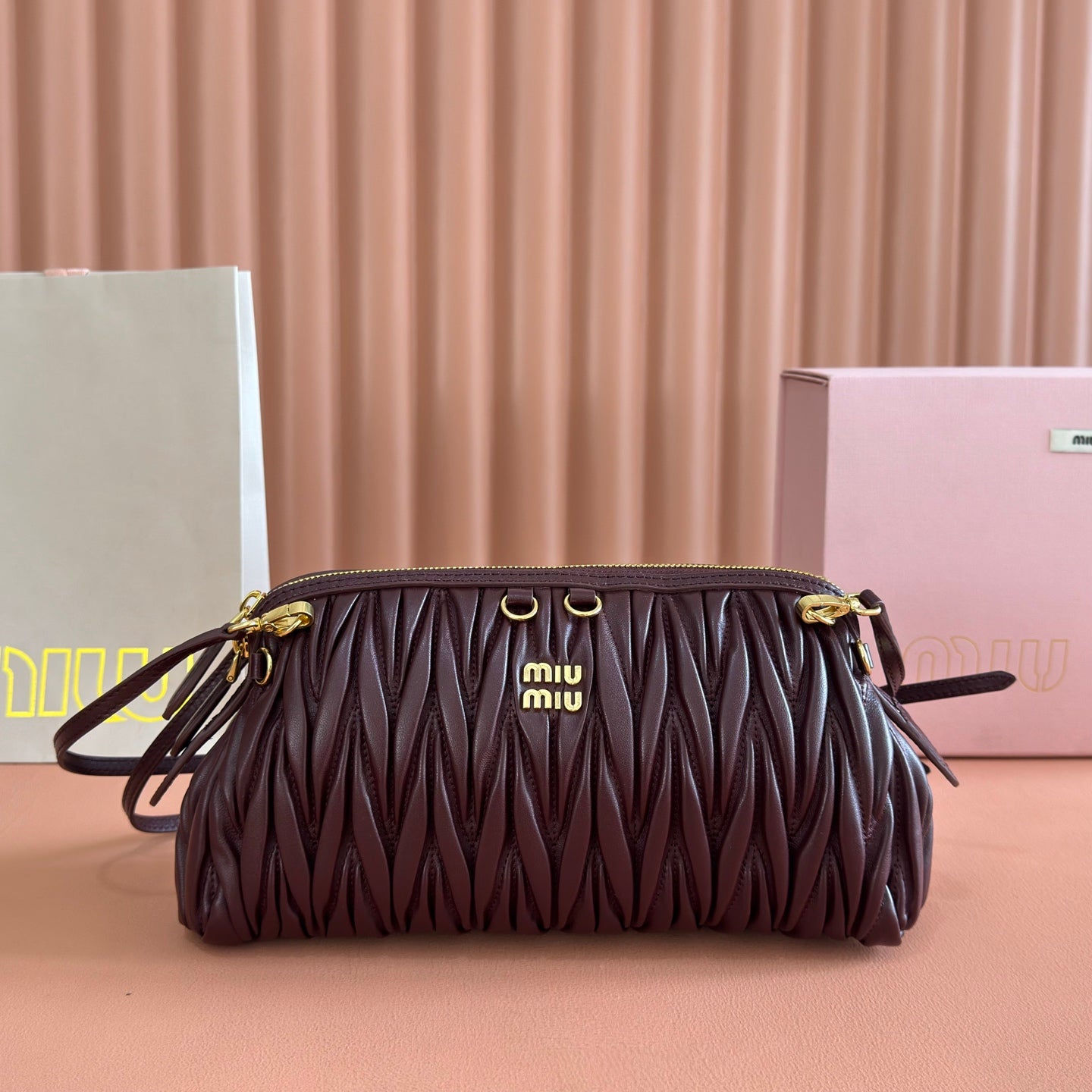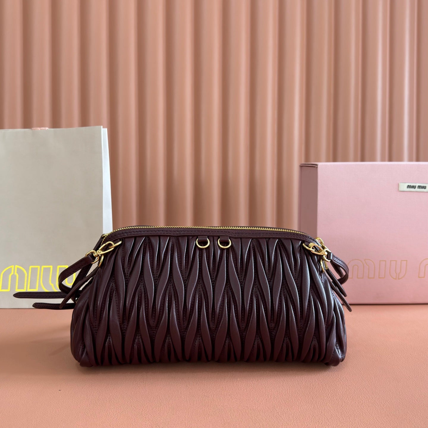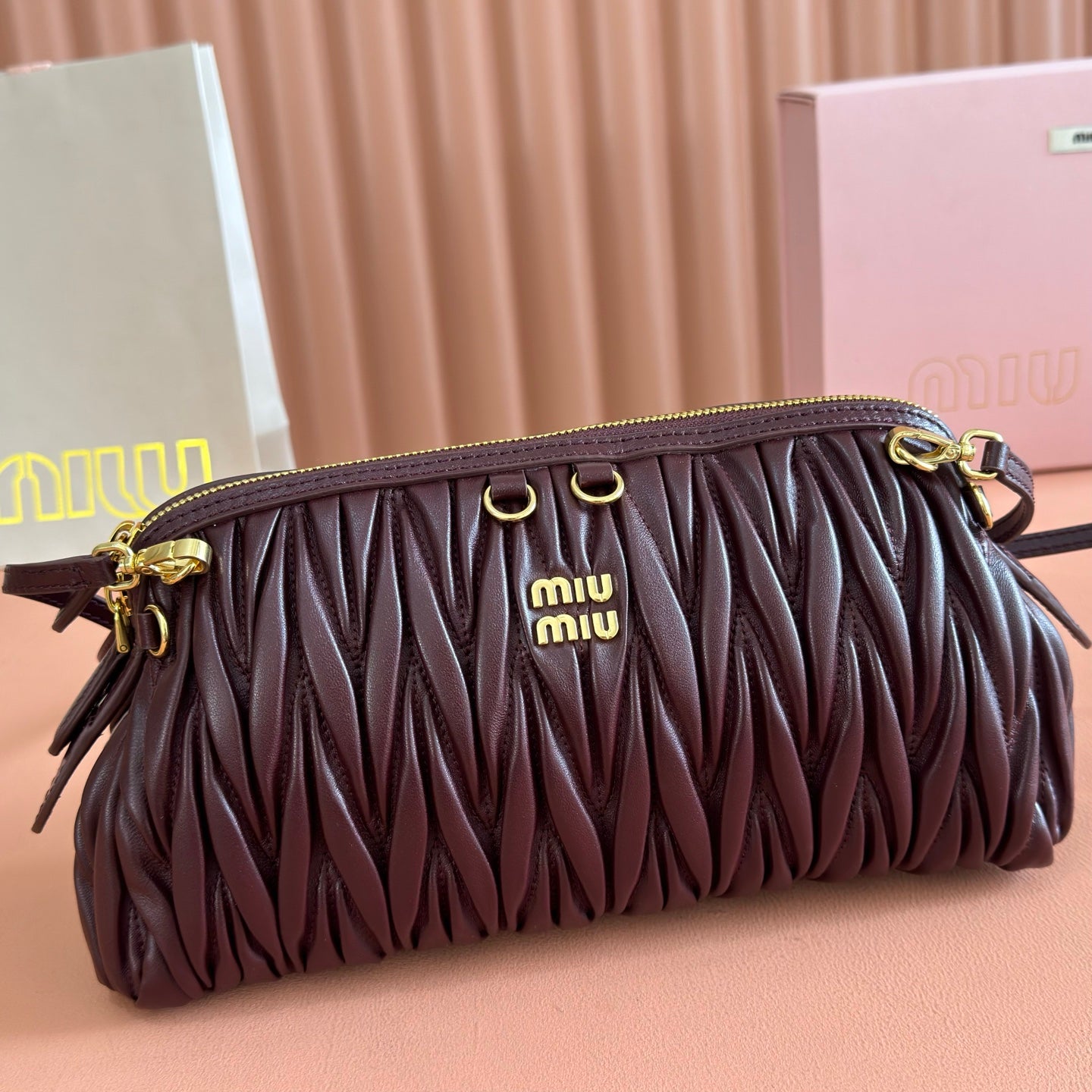 Miu Caprice Clutch Burgundy Matelassé Nappa Leather 280763