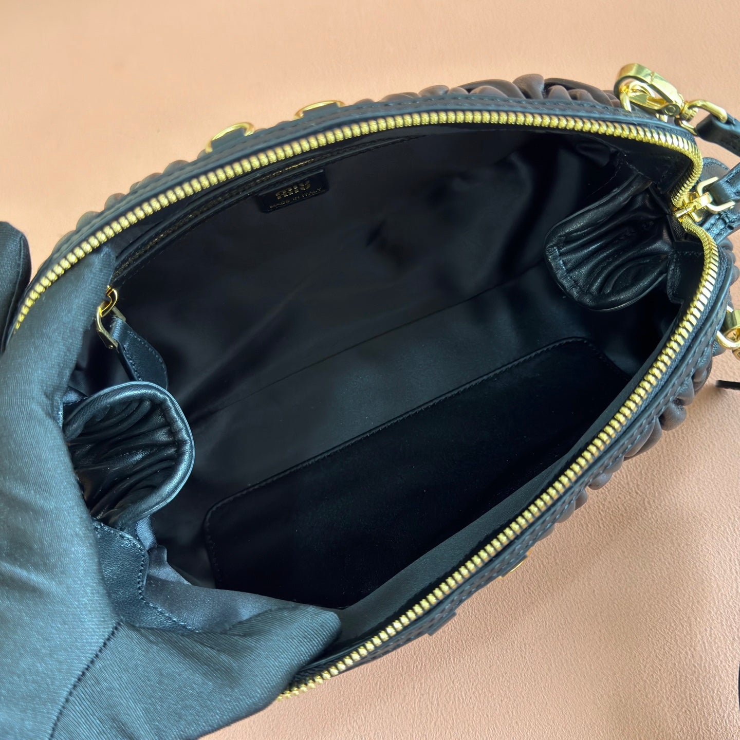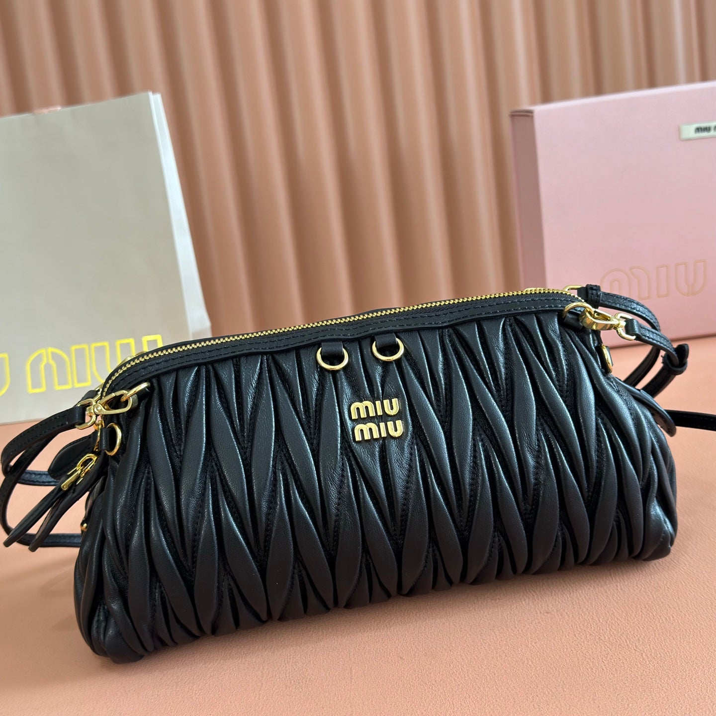 Miu Caprice Clutch Black Matelassé Nappa Leather 280764