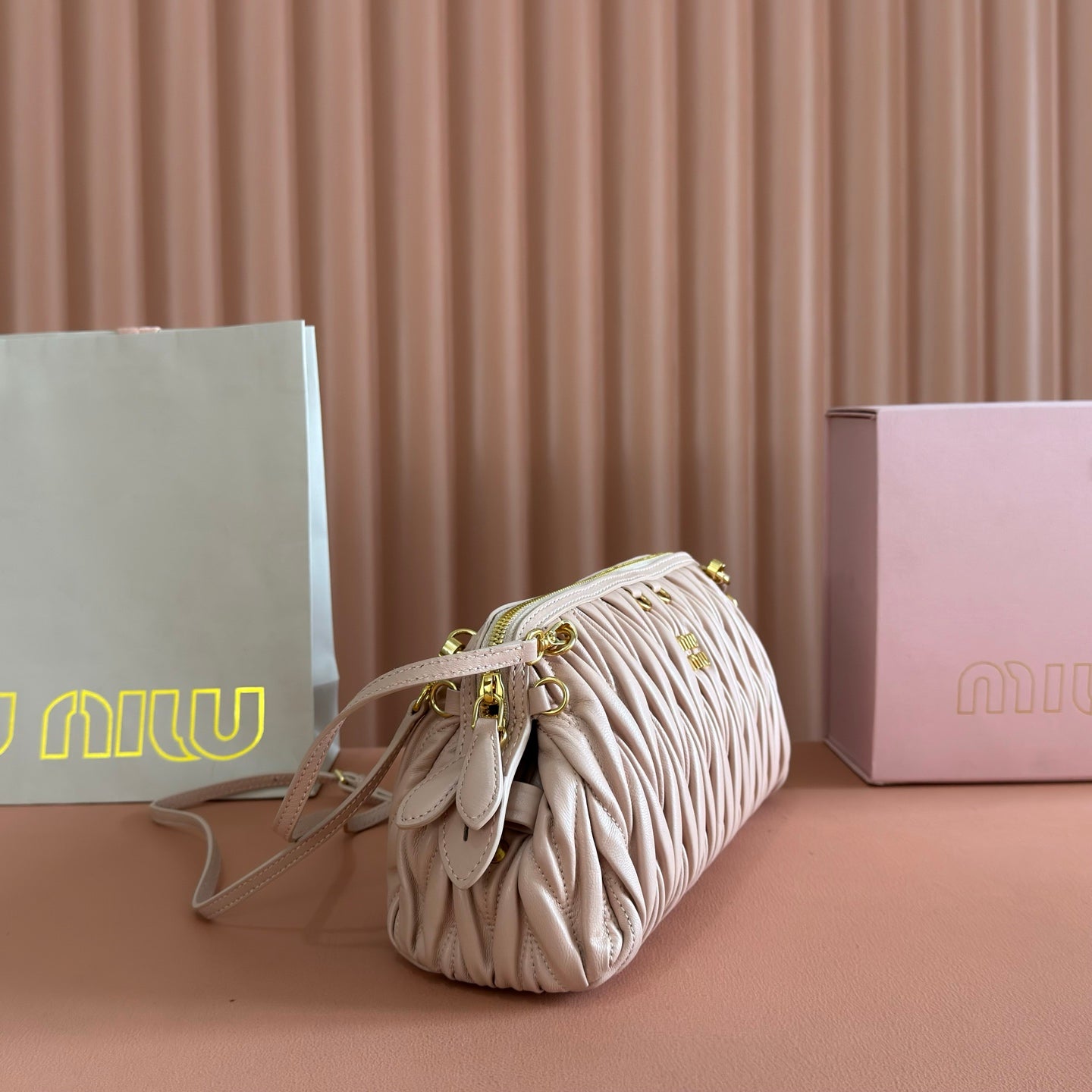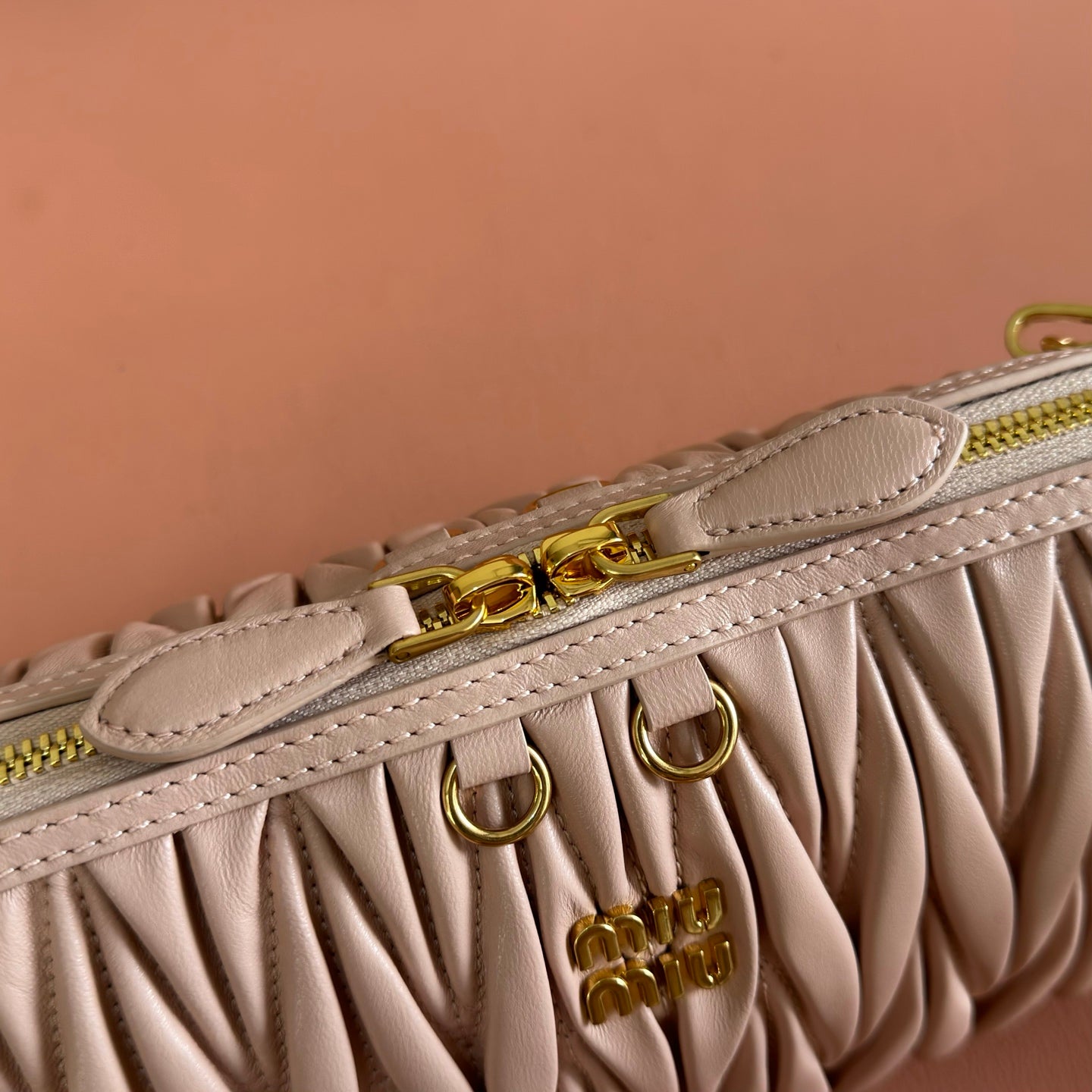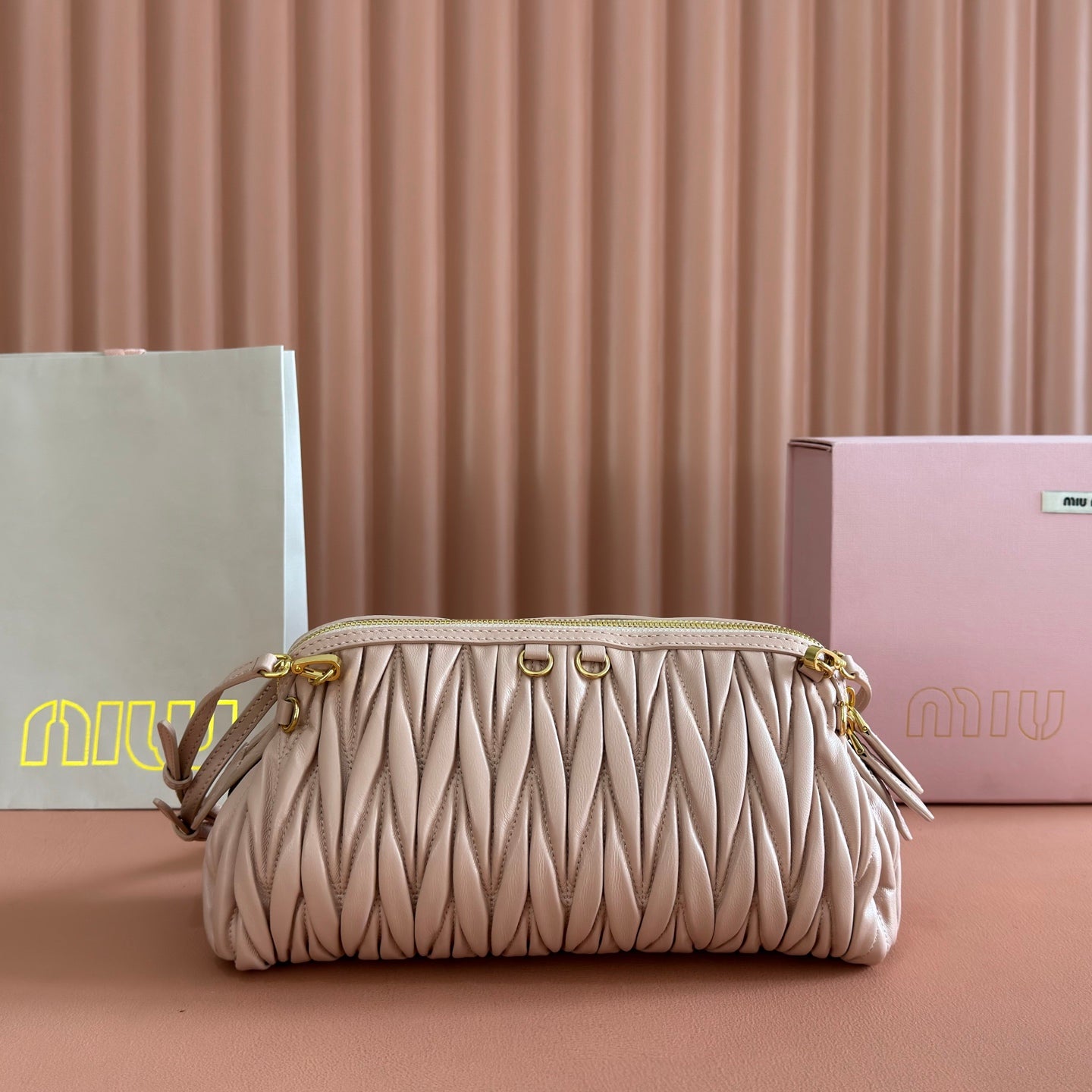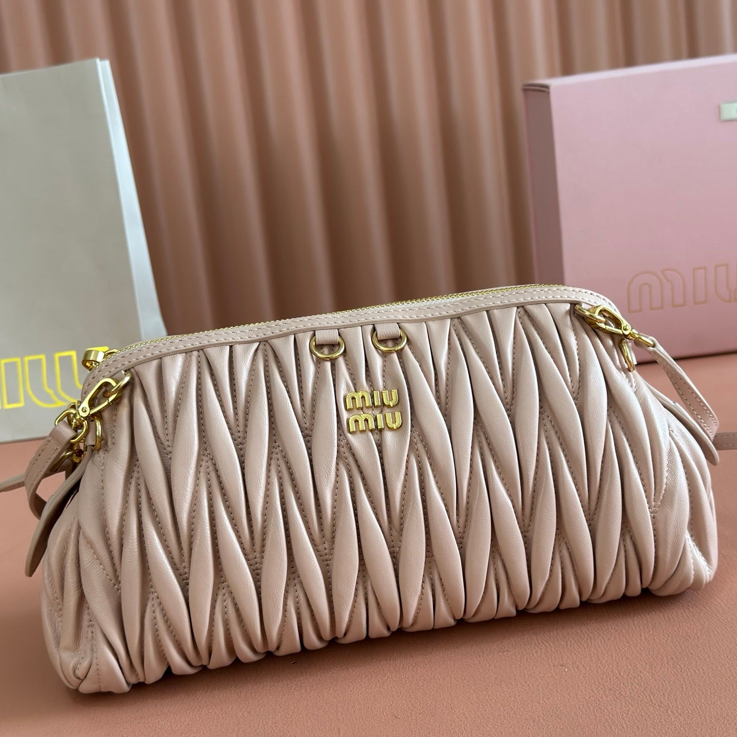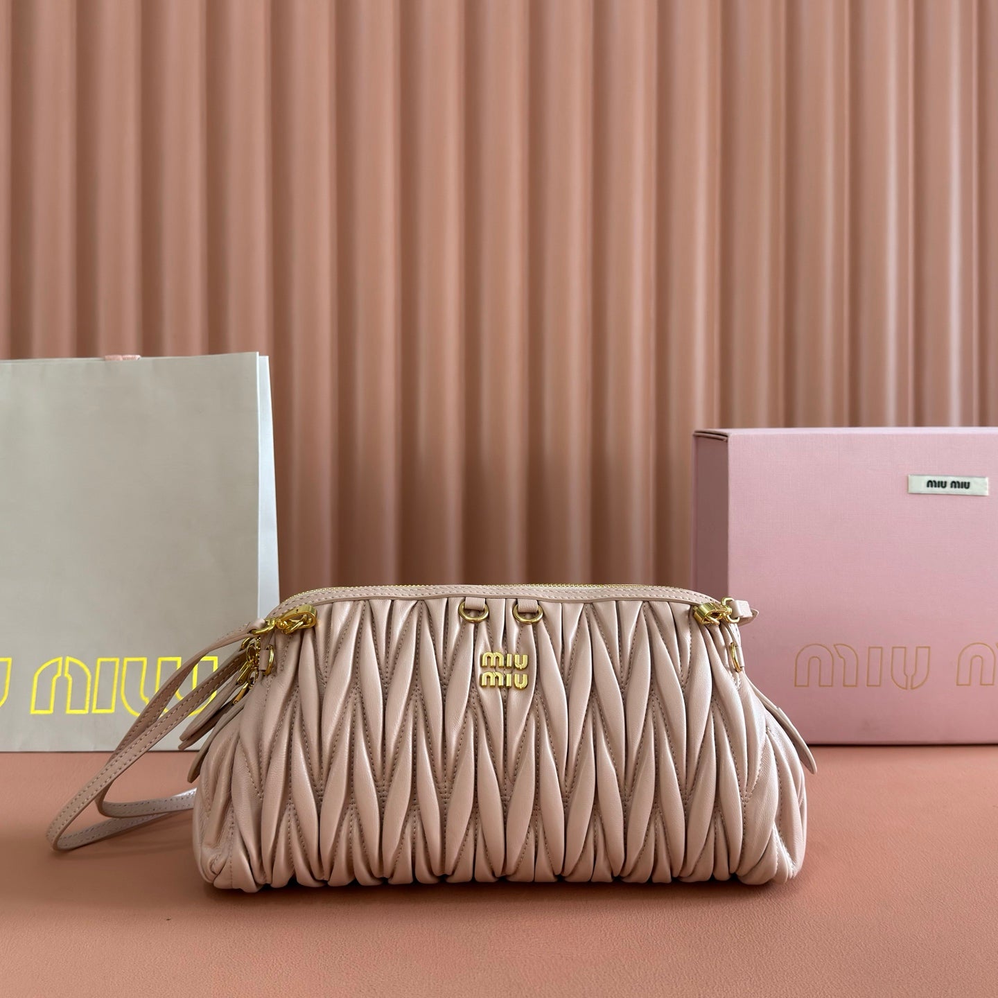 Miu Caprice Clutch Light Pink Matelassé Nappa Leather 280765