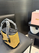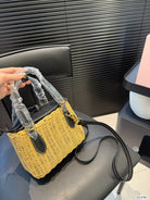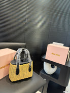 BASKET BAG 18 IN BROWN BEIGE WICKER AND BLACK CALFSKIN TRIM