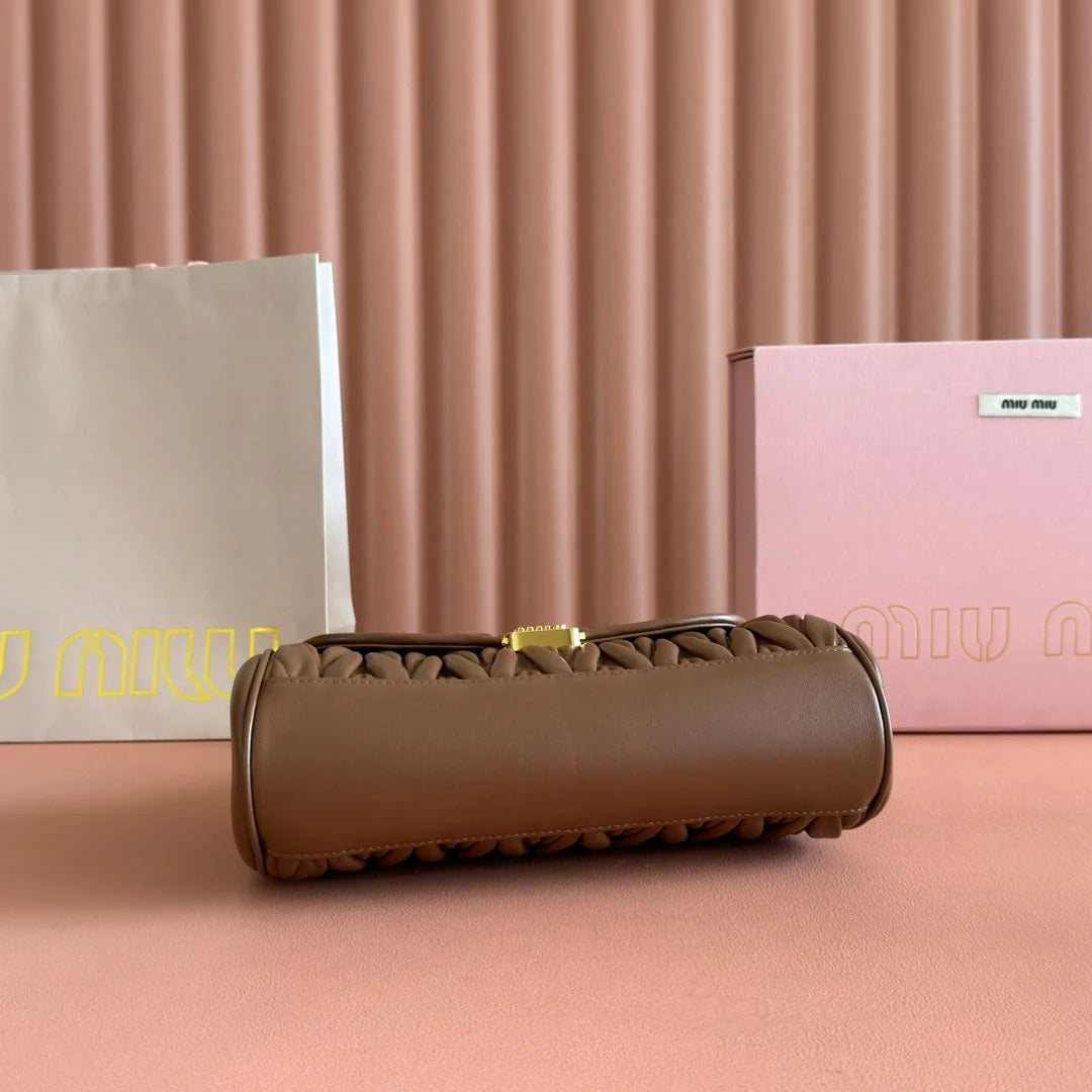 CHAIN SHOULDER BAG 24 IN BROWN PATENT SMOOTH LAMBSKIN