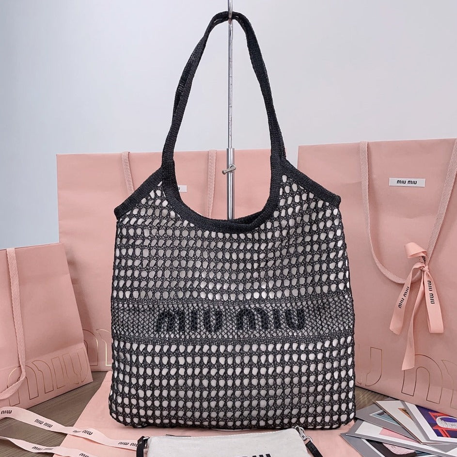 ivy mini tote bag 40cm black woven fabric and linen