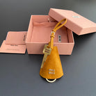 Leather Bag Charm With Key Yellow Orange Suede 240341