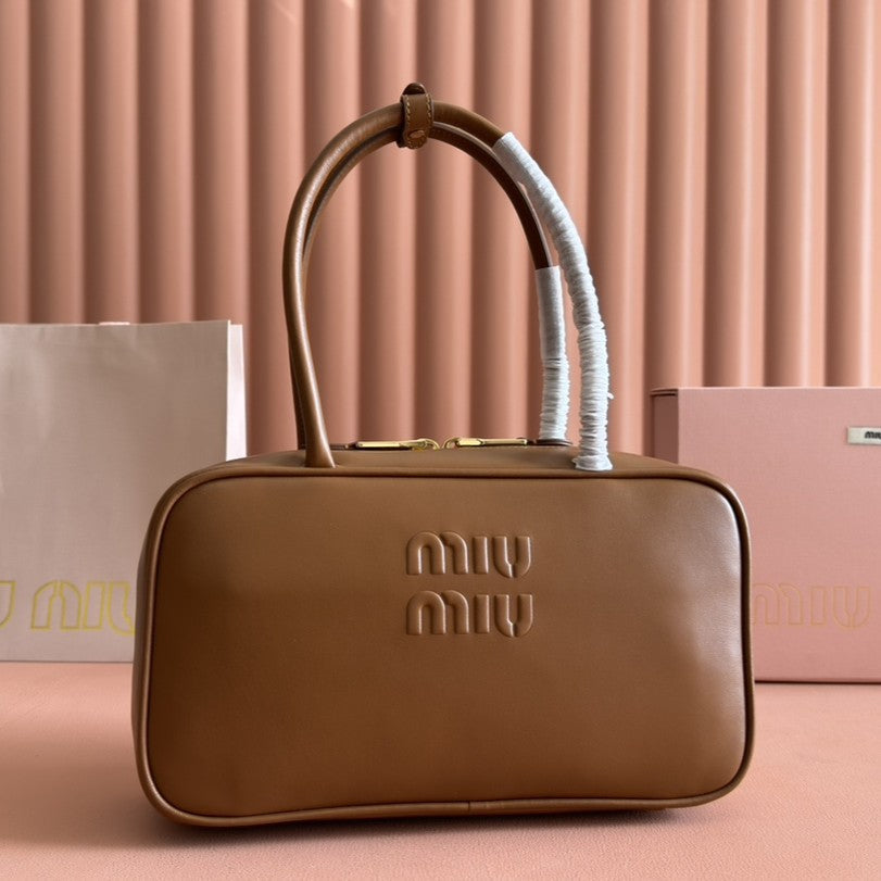 Miu Beau Top-Handle Bag 29 Brown Leather 239692