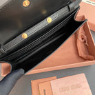 Miu Logo Wallet On A Chain 19 Lettering Black Calfskin 240411