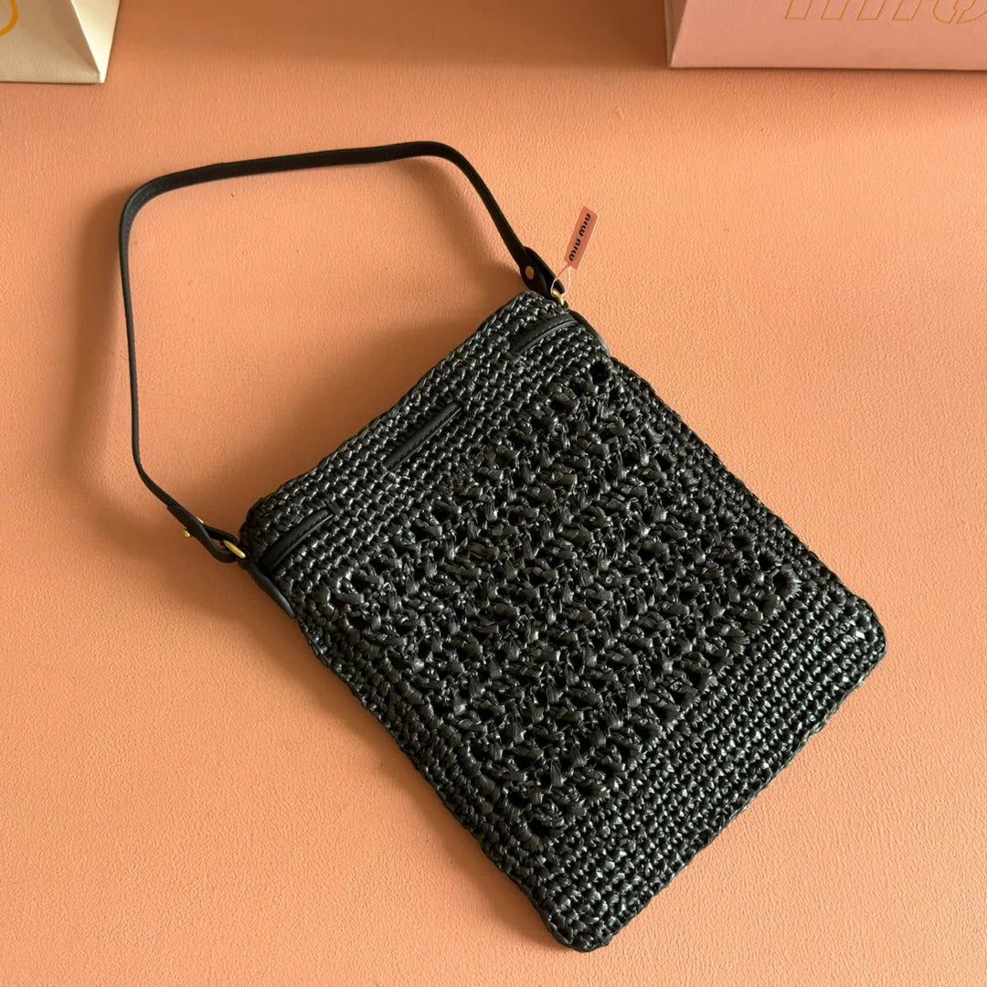 WANDER BUCKET BAG 23 BLACK IN RAFFIA WITH LEATHER TRIM