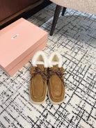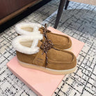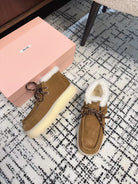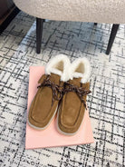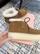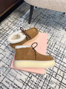 Miu Ankle Boots Brown Yellow Fleece Lining Cow Suede