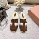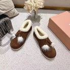 Miu Booties Dark Brown Suede Shearling-Lined with Fur Tassels 455927