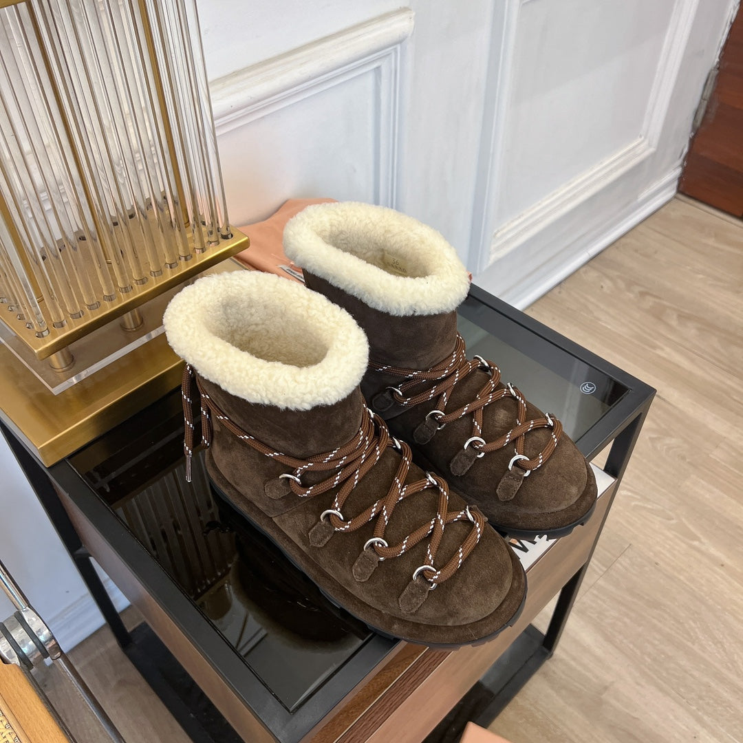 Miu Ankle Boots Chocolate Brown Fleece Lining Cow Suede