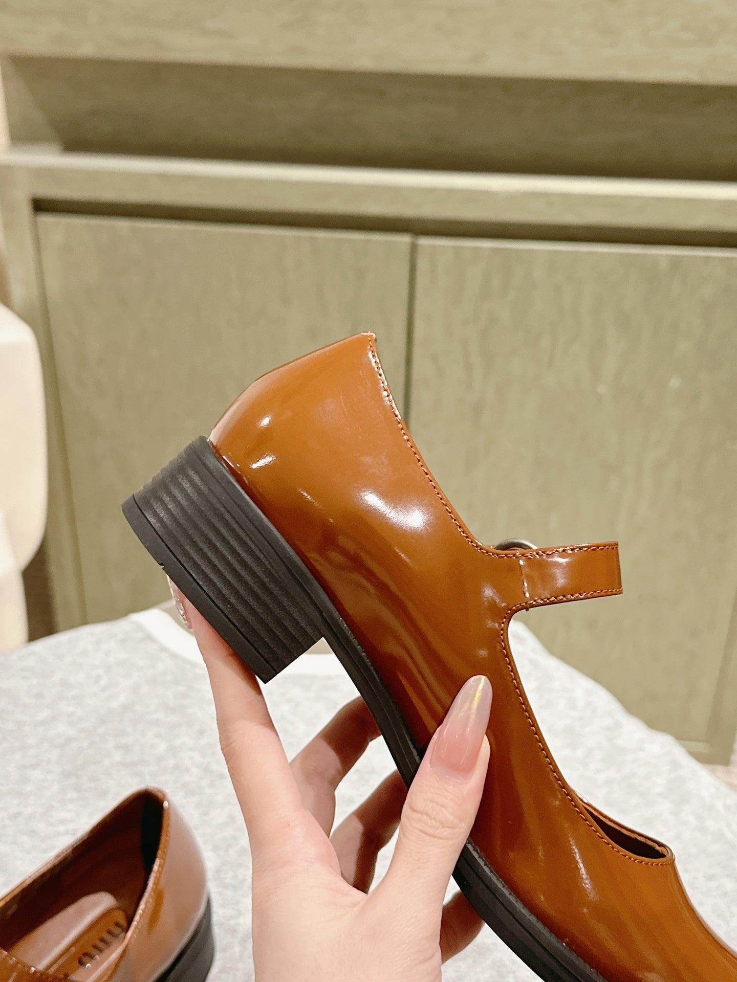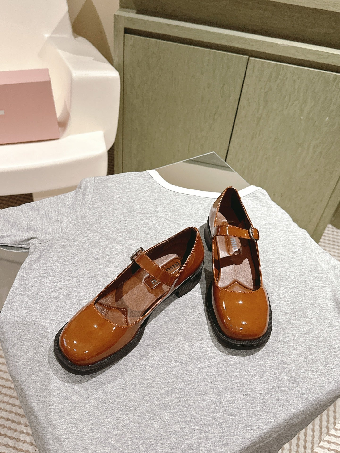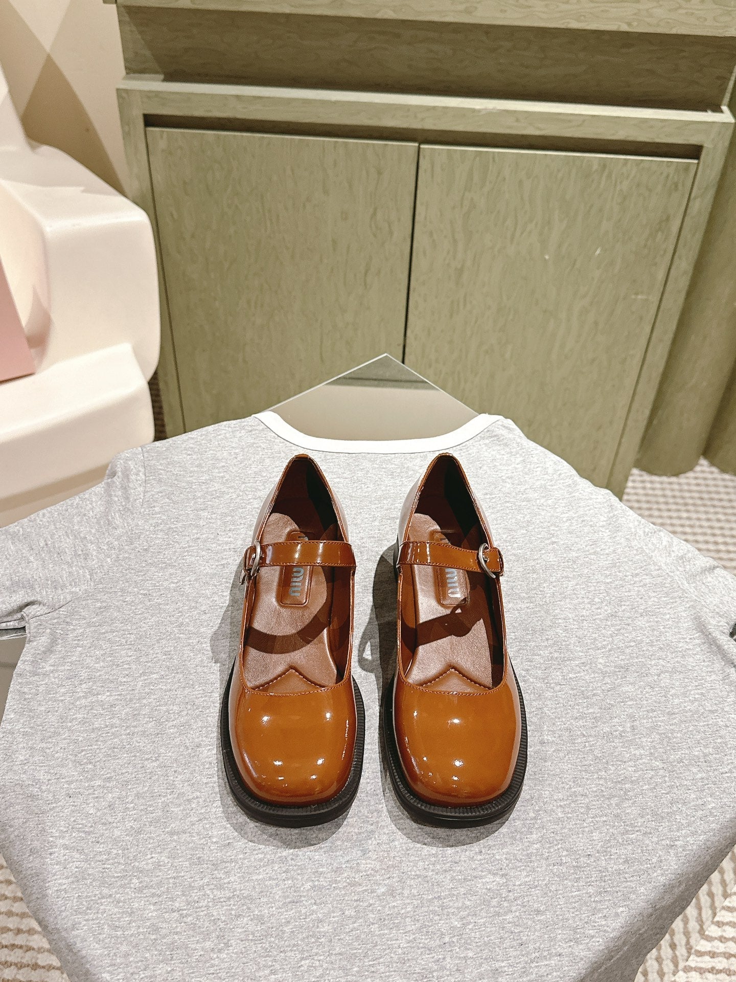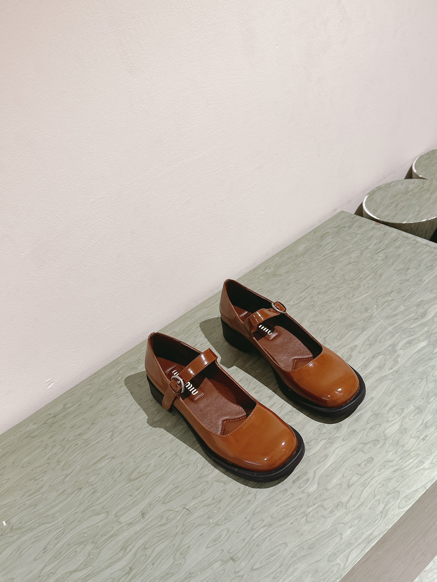Miu Mary Jane Shoes Brown Patent Leather 445565