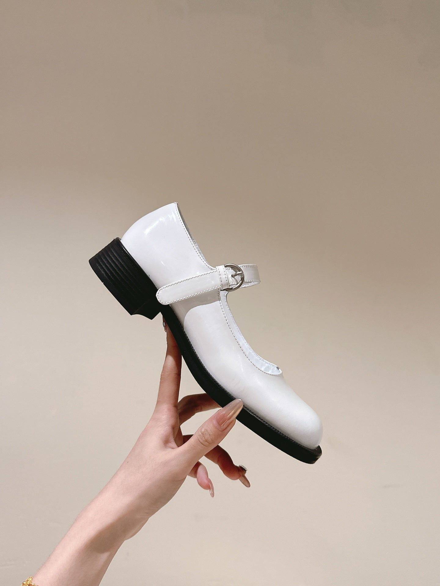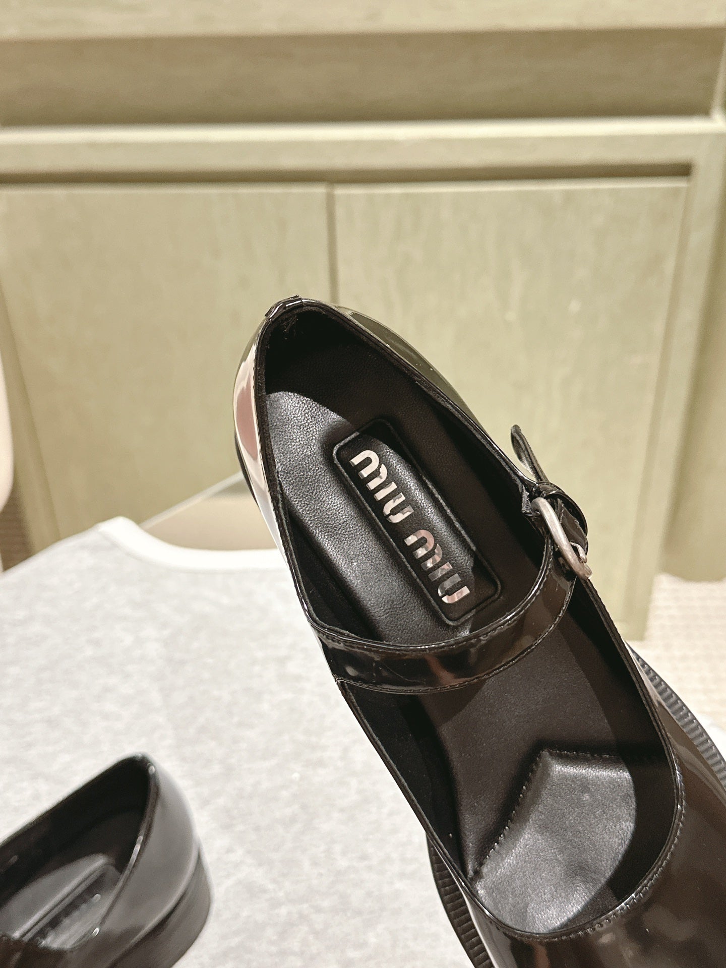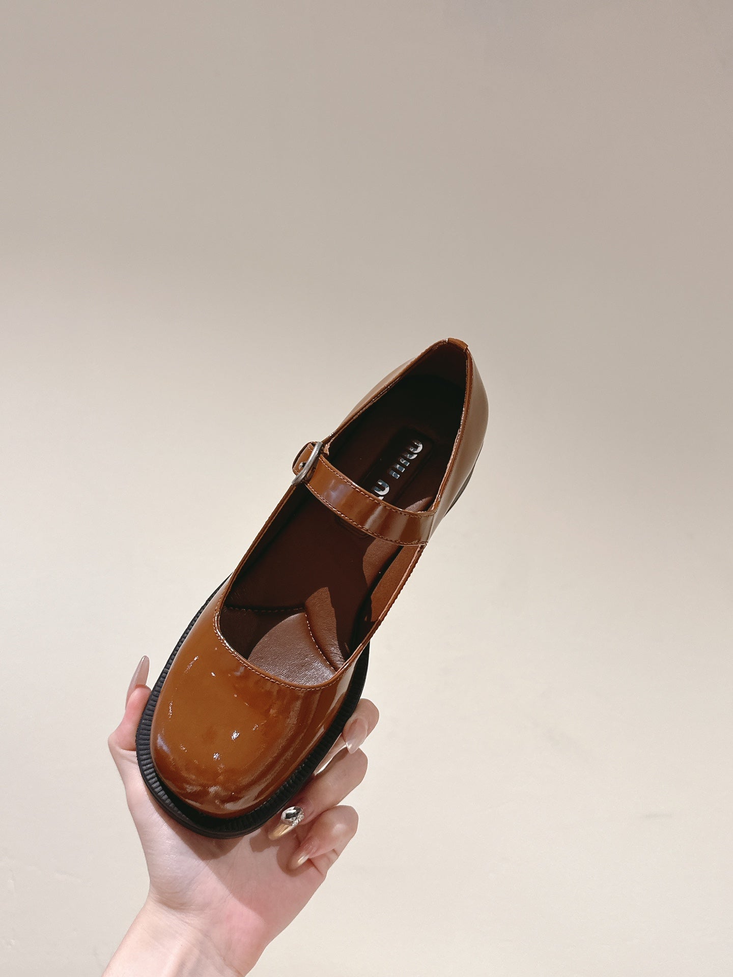Miu Mary Jane Beige Shiny Lambskin