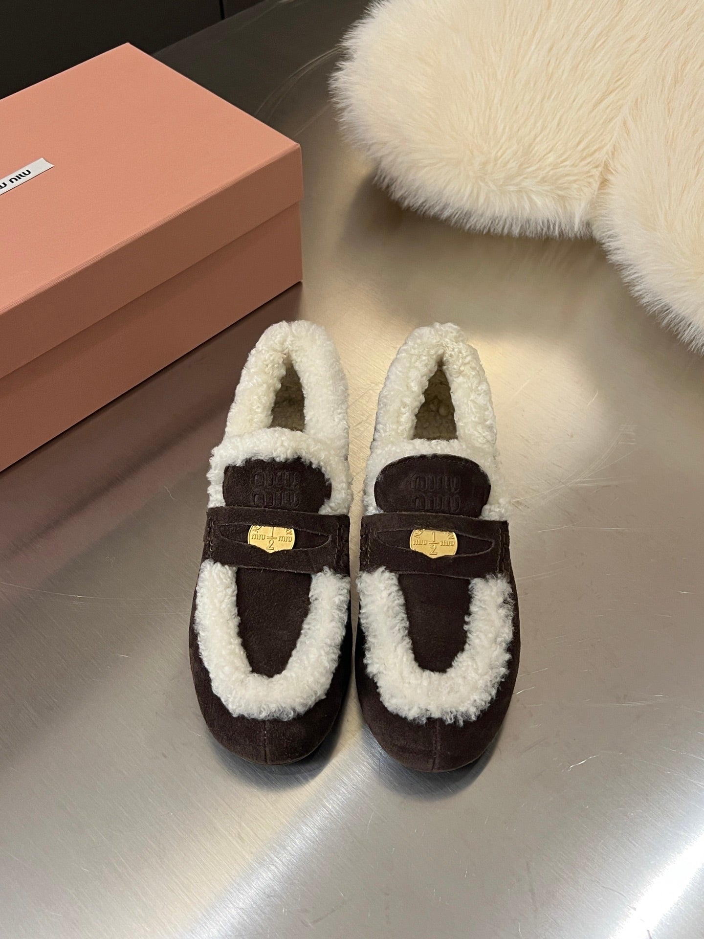 MiuMiu 25 Fur Loafer Brown Chocolate mix Beige Suede 535600