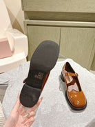 Miu Mary Jane Shoes Brown Patent Leather 445565