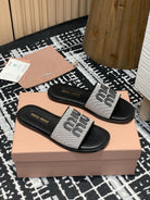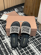 Miu 25S Beige and Black Canvas and leather slides 227133