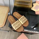 Miu 25S Beige and Gold Canvas and leather slides 678740