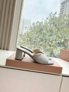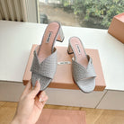 Miu Grey Croc Embossed Slide Sandals with Embellished Heel 223919