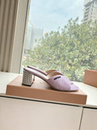 Miu Purple Croc Embossed Slide Sandals with Embellished Heel 223918