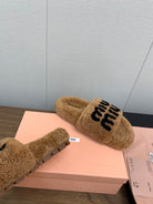 Miu slippers Saddle Brown With Black Lettering Pure Wool