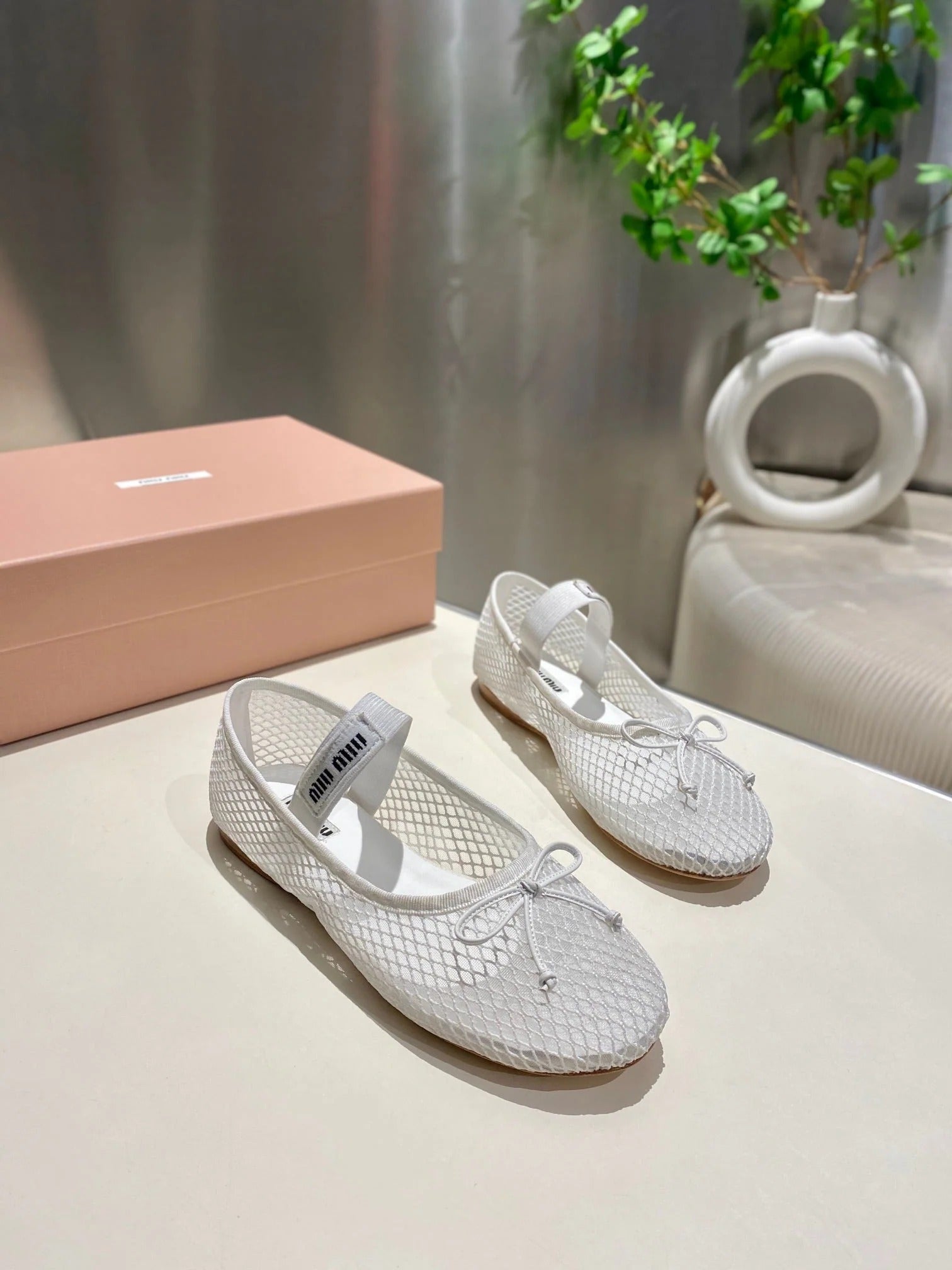 MARY JANE FLAT IN WHITE MESH