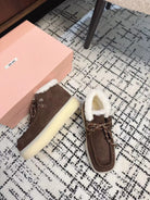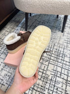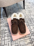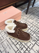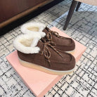 Miu Ankle Boots Chocolate Brown Fleece Lining Cow Suede