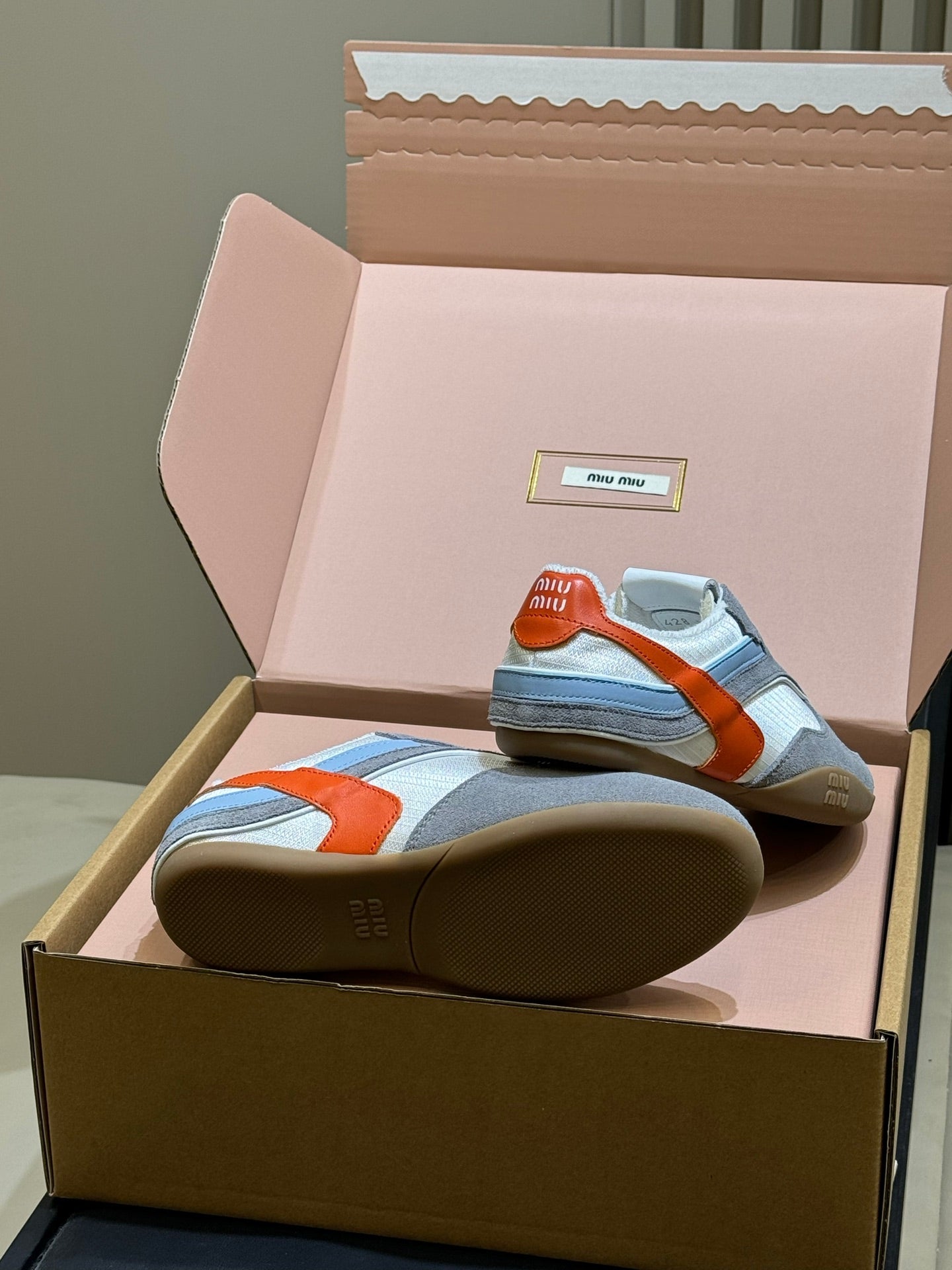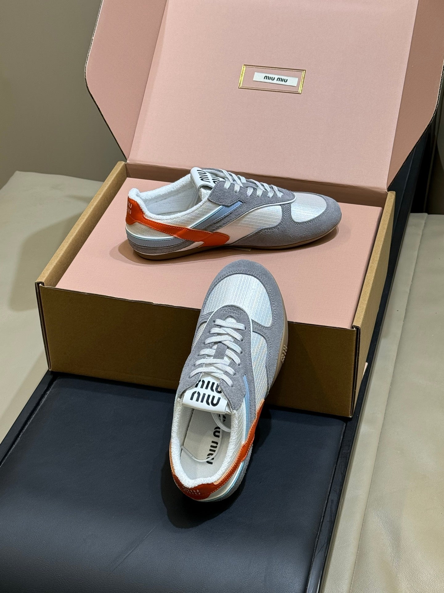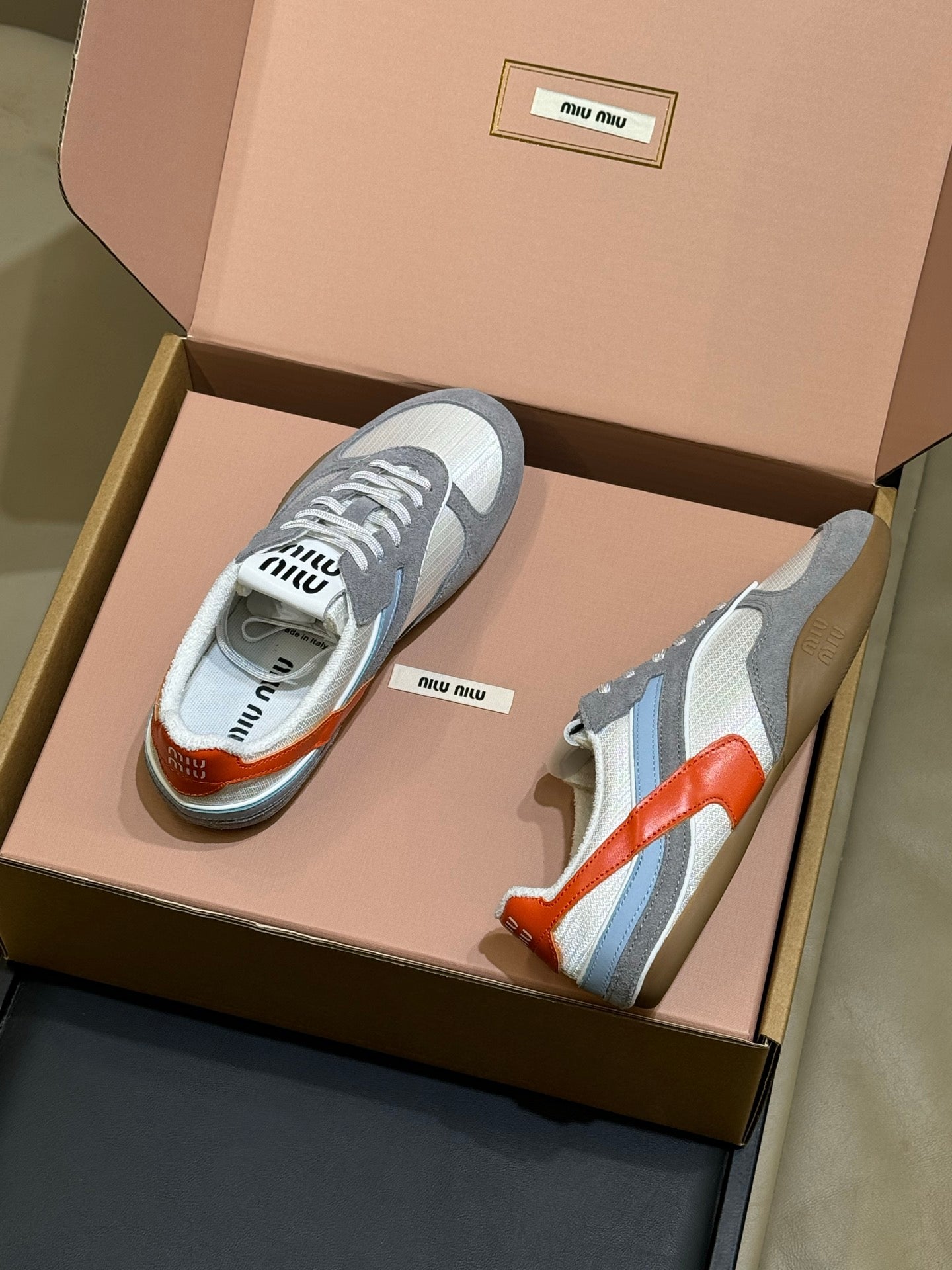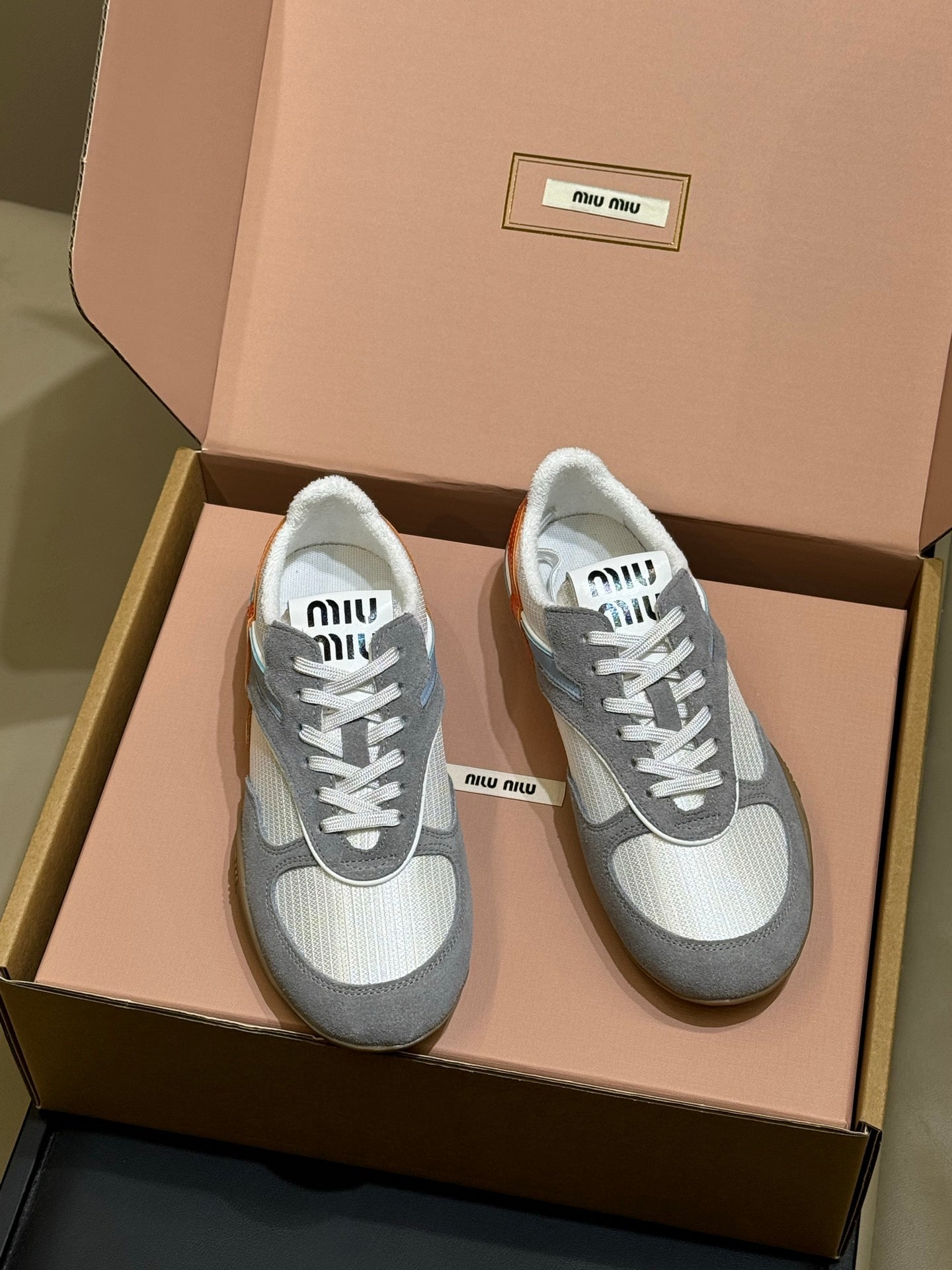 Miu Miu 2026 Tyre Sneaker White Orange Grey Mesh Suede 621350