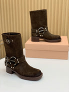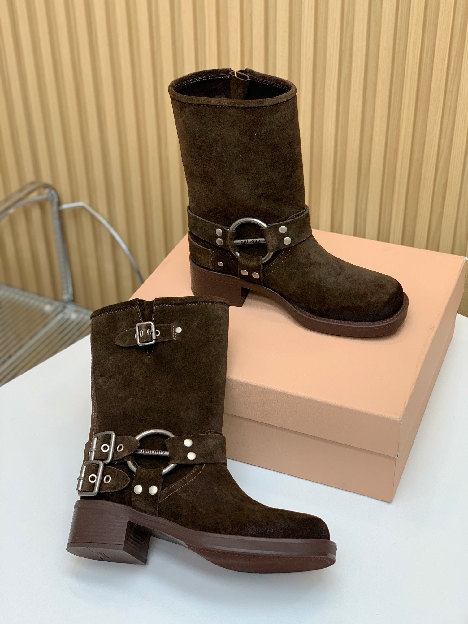 Miu Miu Biker Mid-Length Boots Brown Suede 535197