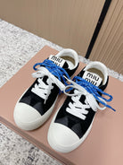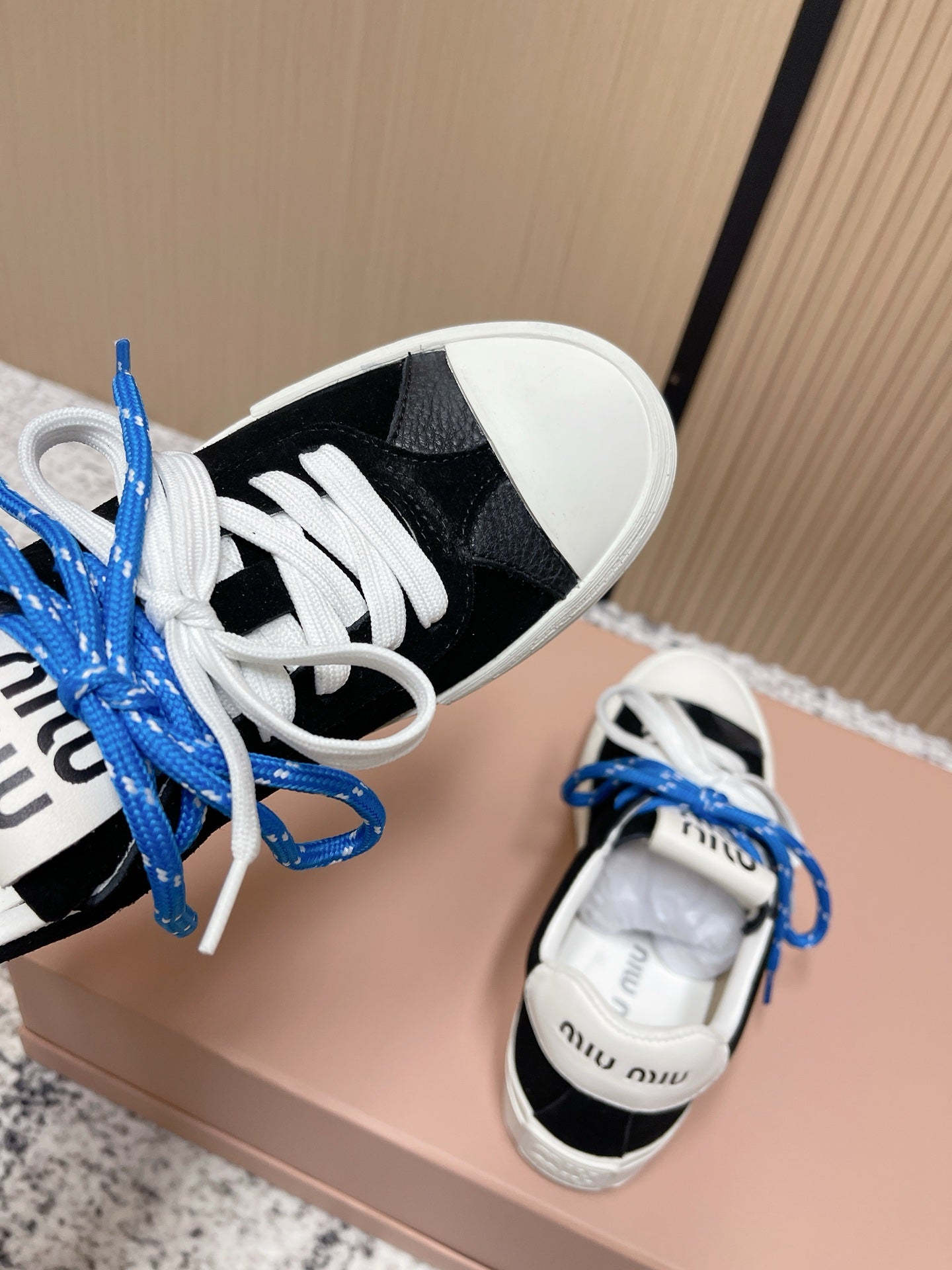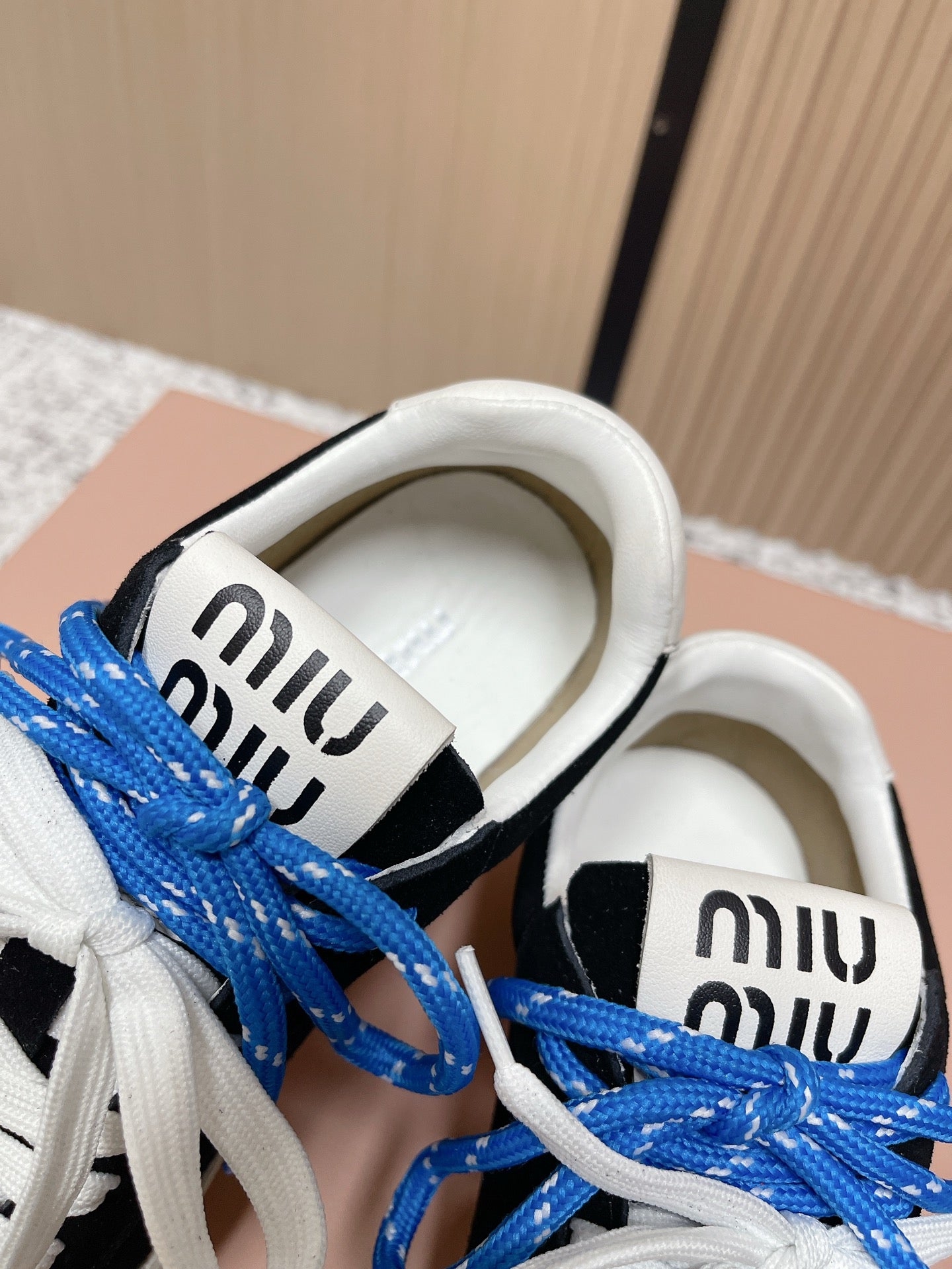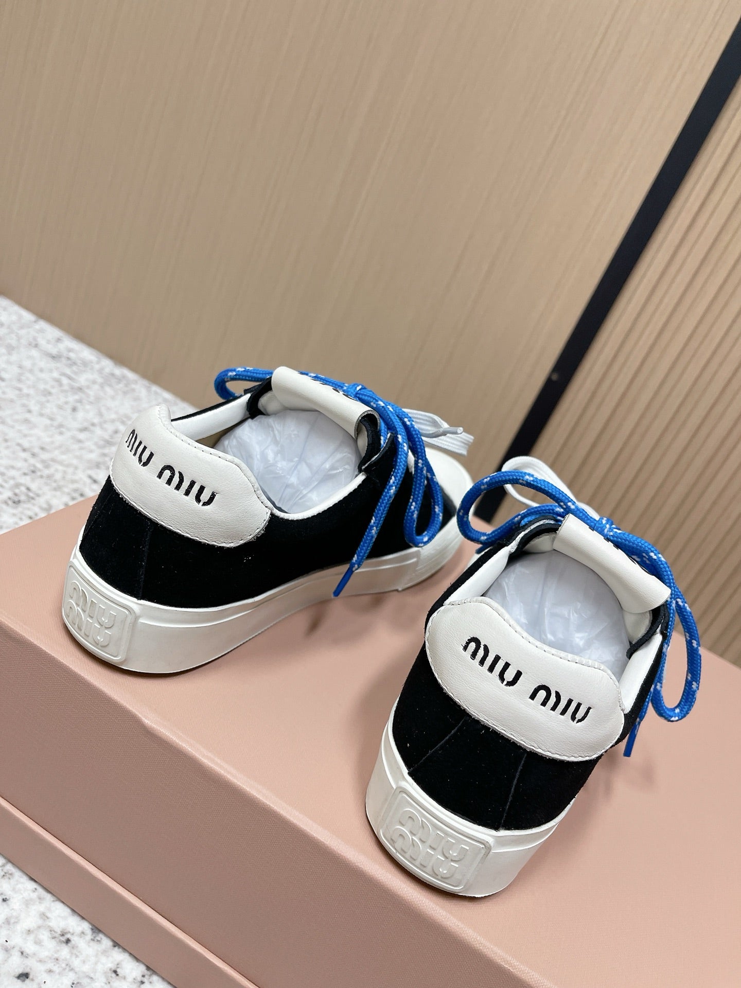 Miu Miu Plume Sneakers Black White Blue Suede Cowhite 533982