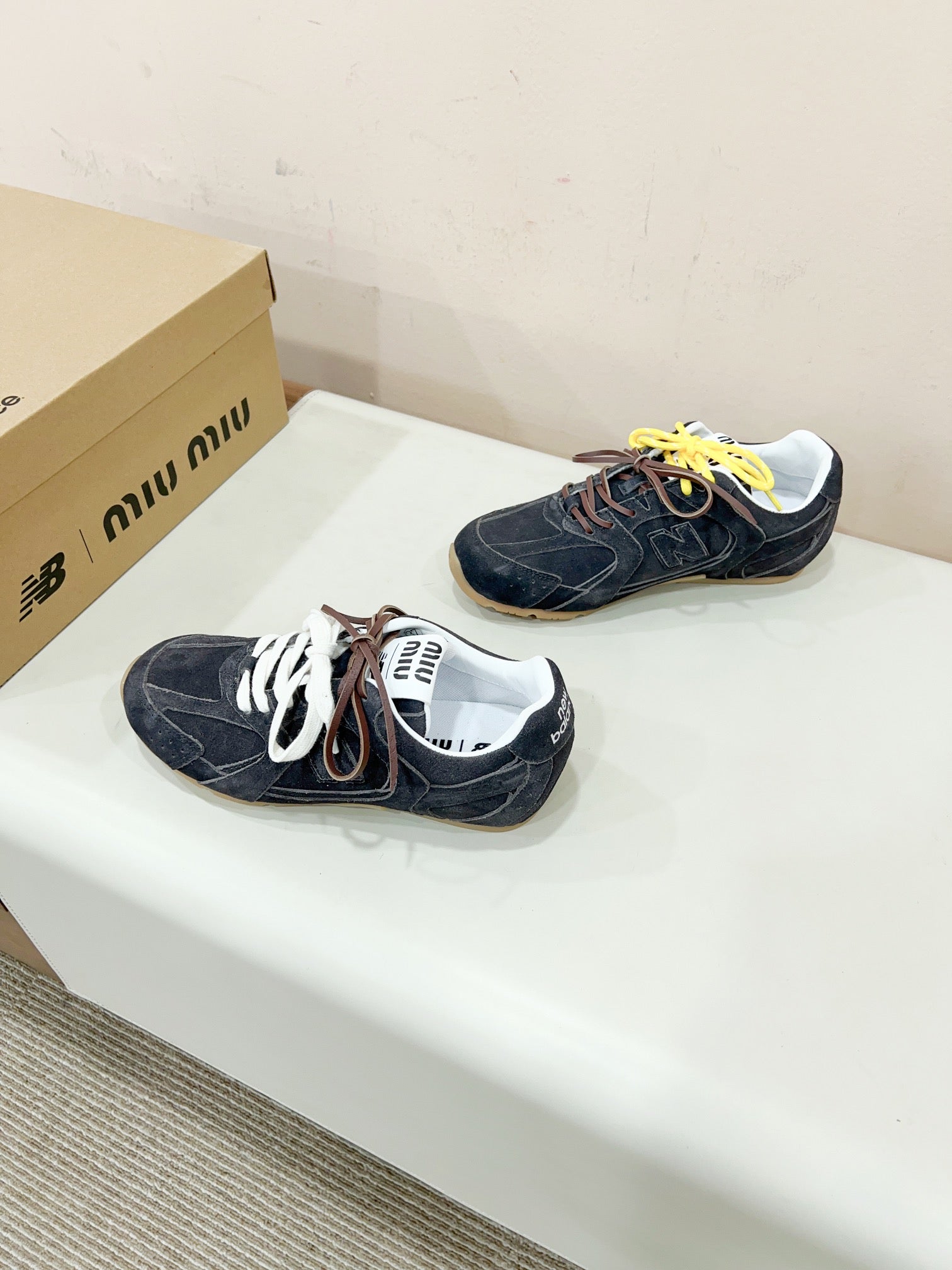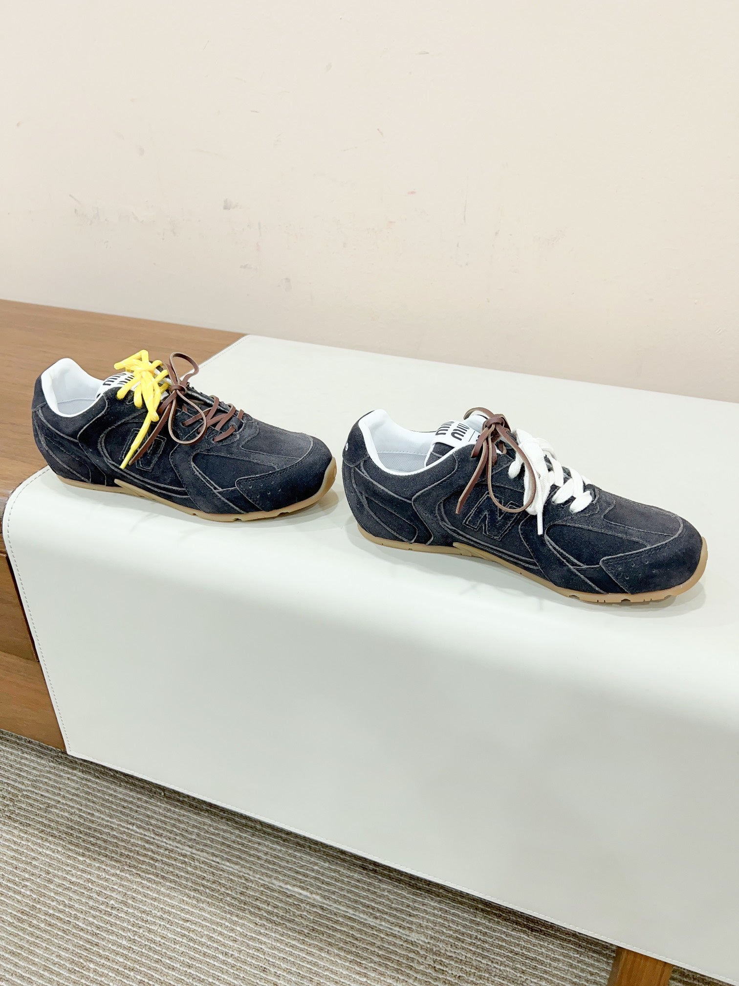 Miu Miu Pre-Owned x New Balance Sneakers Dark Gray Yellow Cowhide Suede