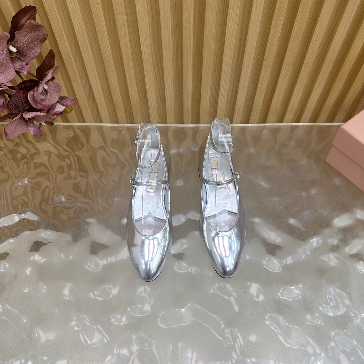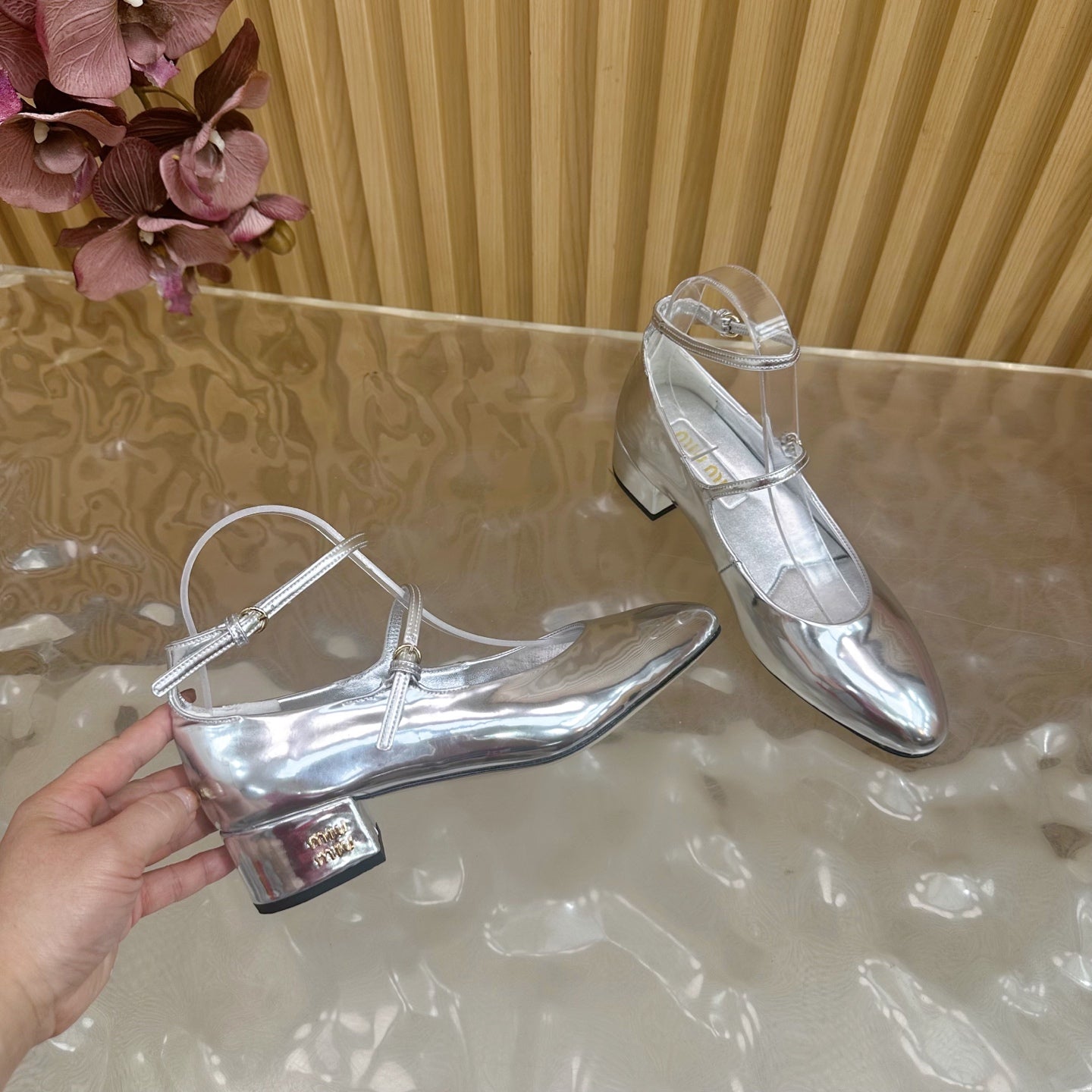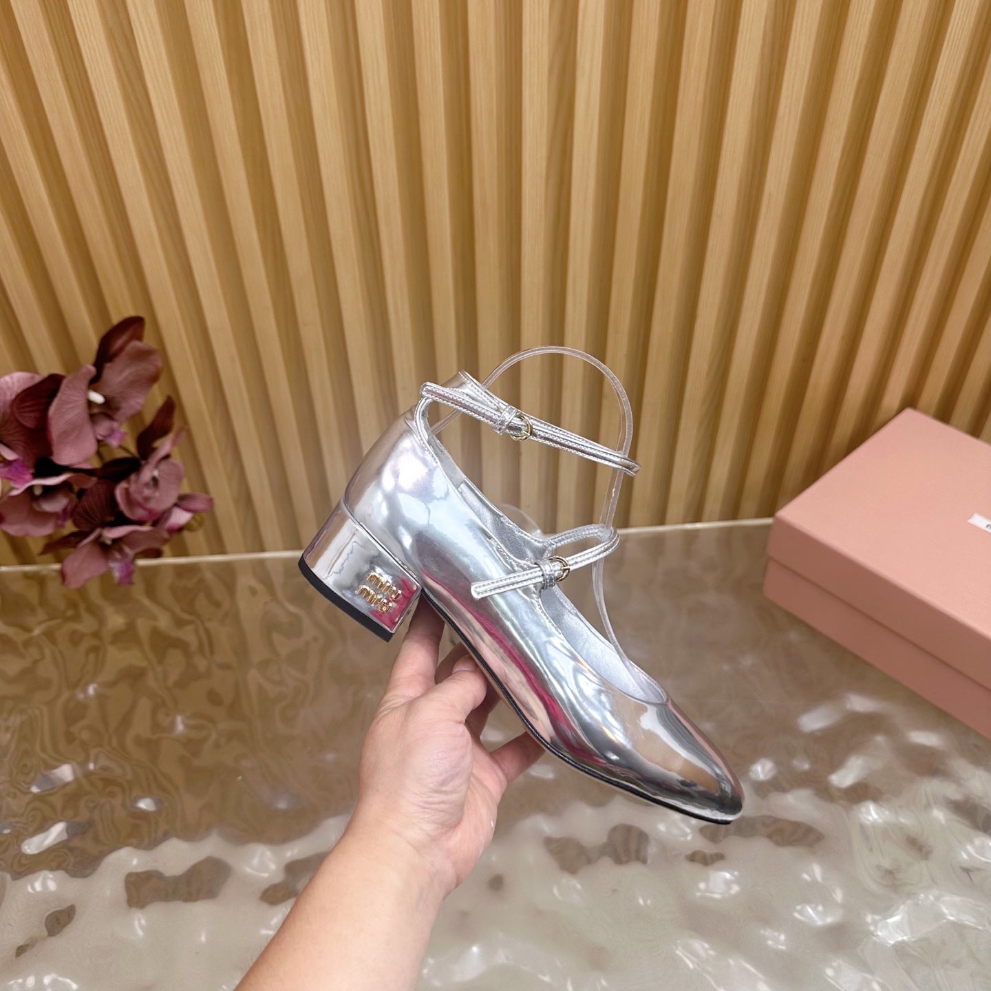 Miu Slingback Pumps With Straps 45mm Sliver Patent Leather 498172