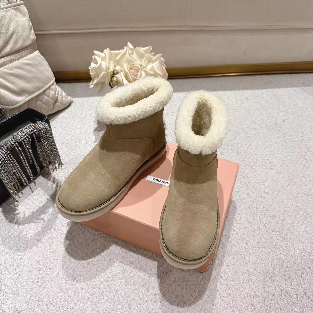 Miu Snow Boots Taupe Suede Shearling 455925