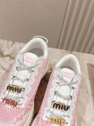 Miu Technical Sneakers White Light Pink Cowhide Fabric 445809