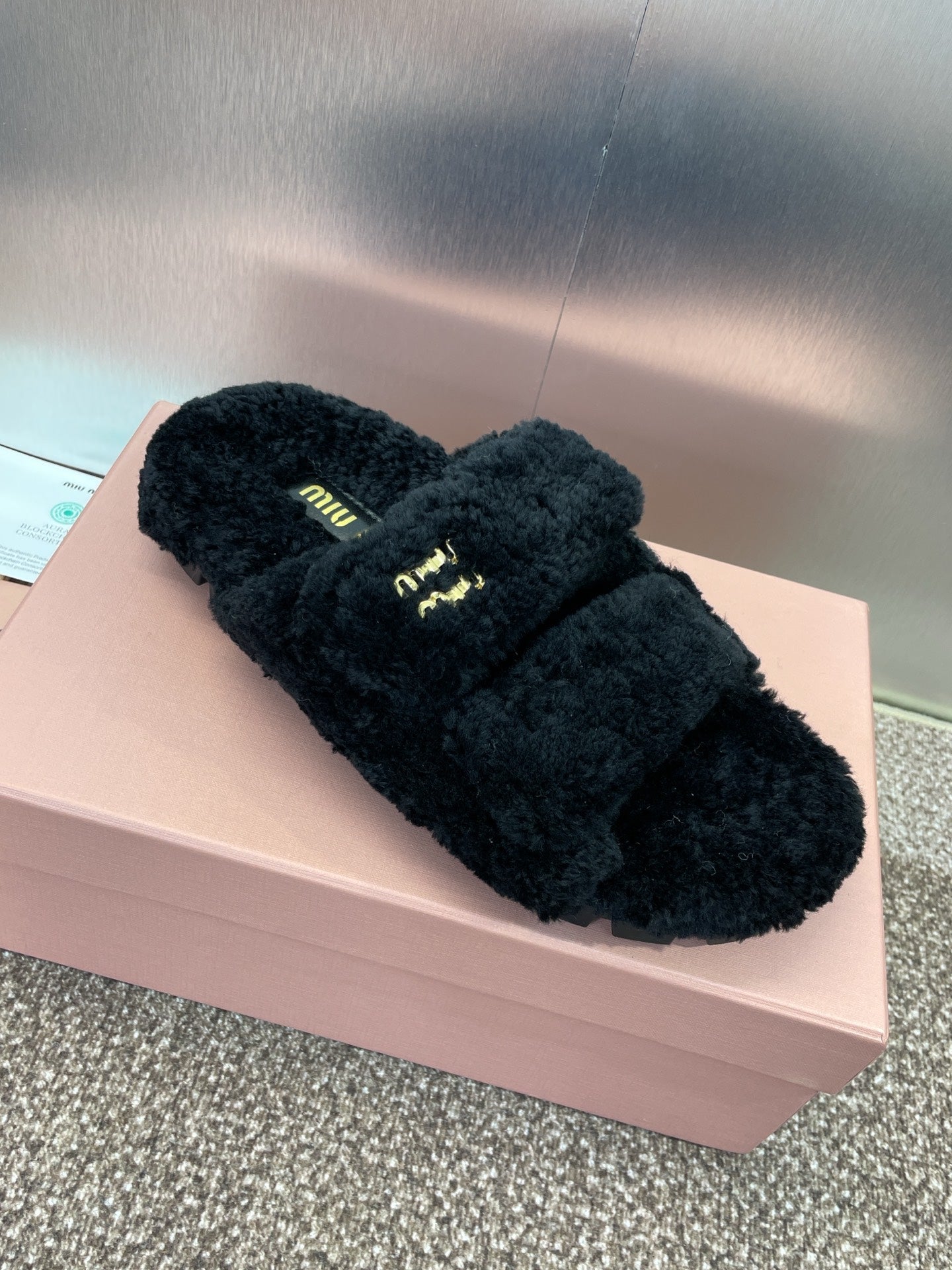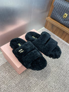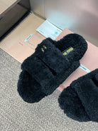Miu Velcro Slippers Black Lambswool 508823