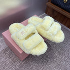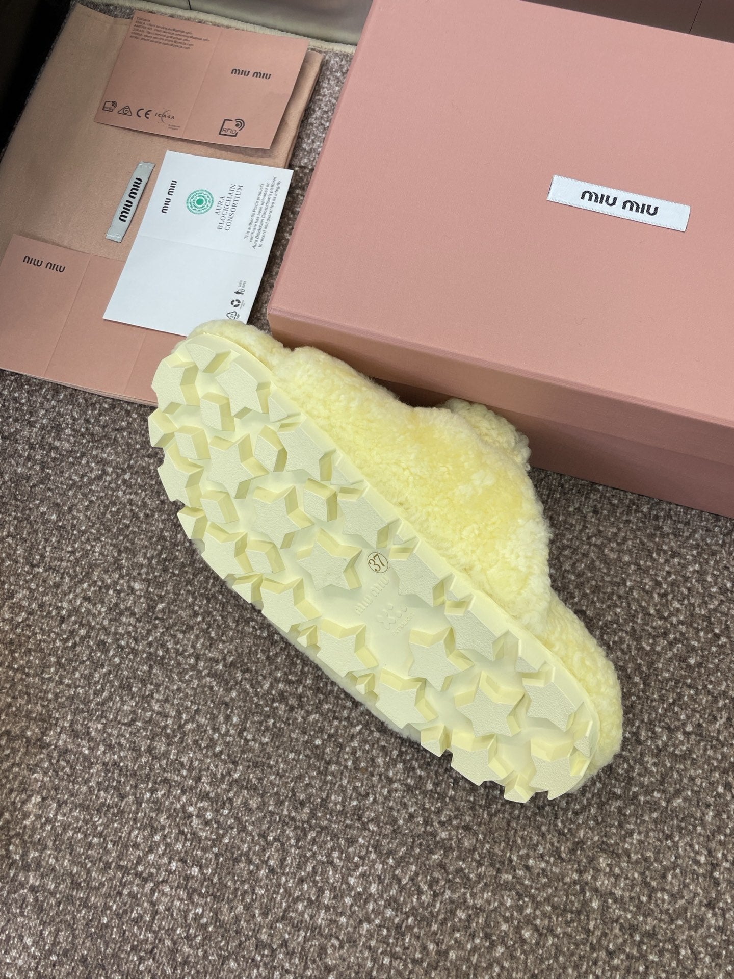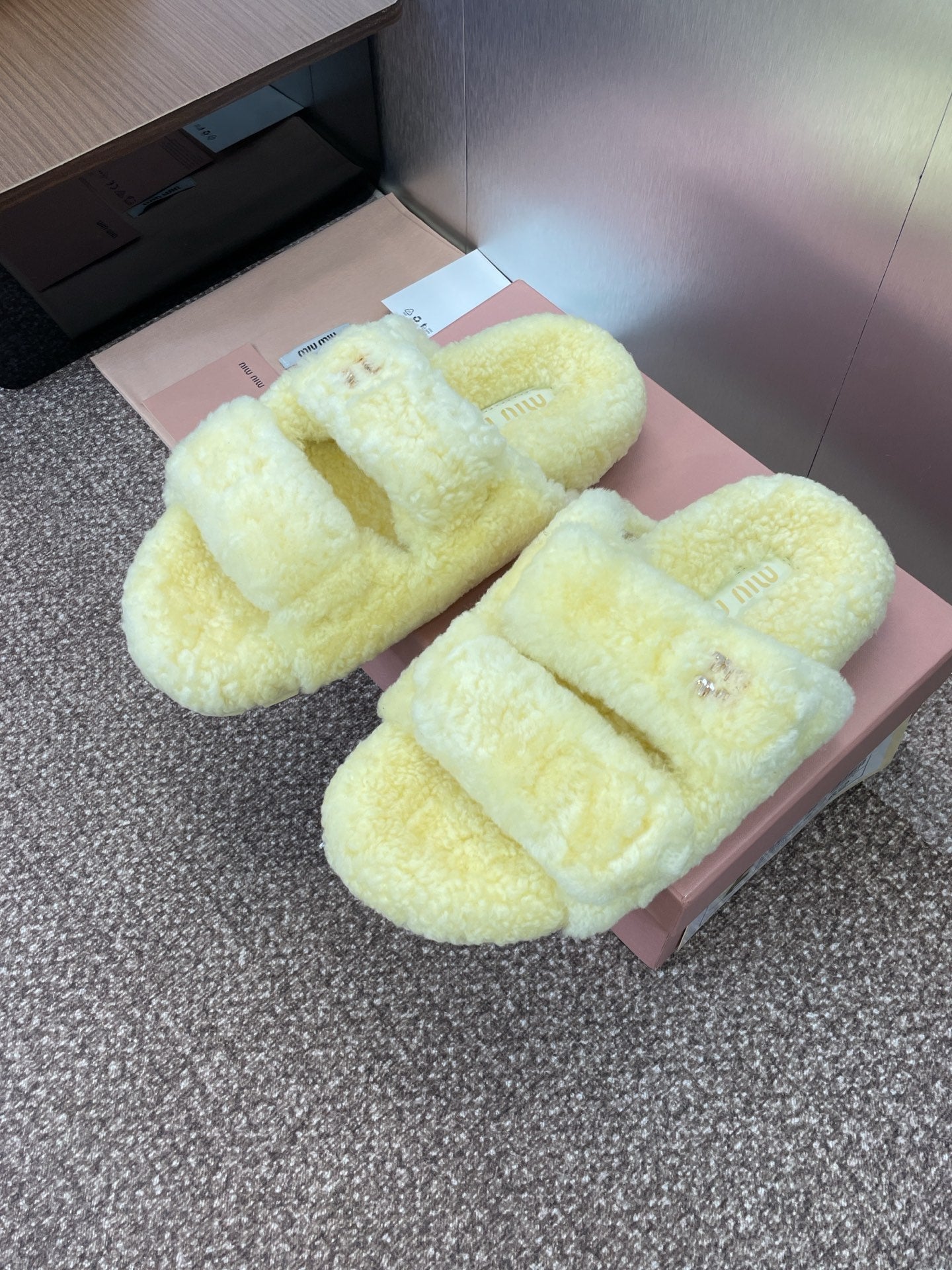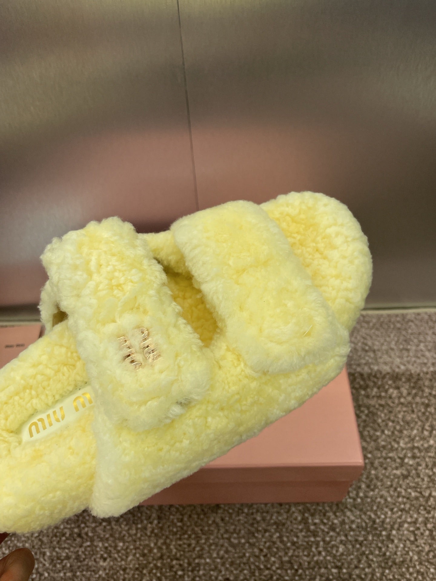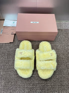 Miu Velcro Slippers Lemon Yellow Lambswool 508824