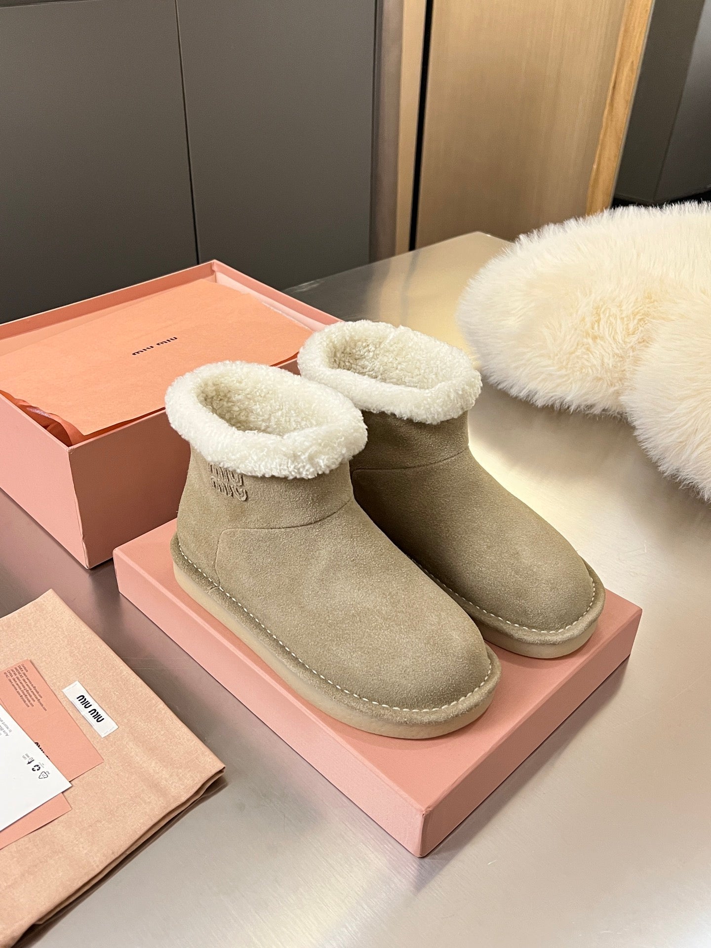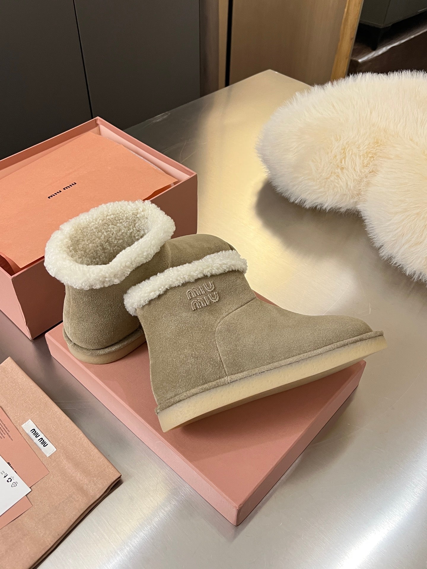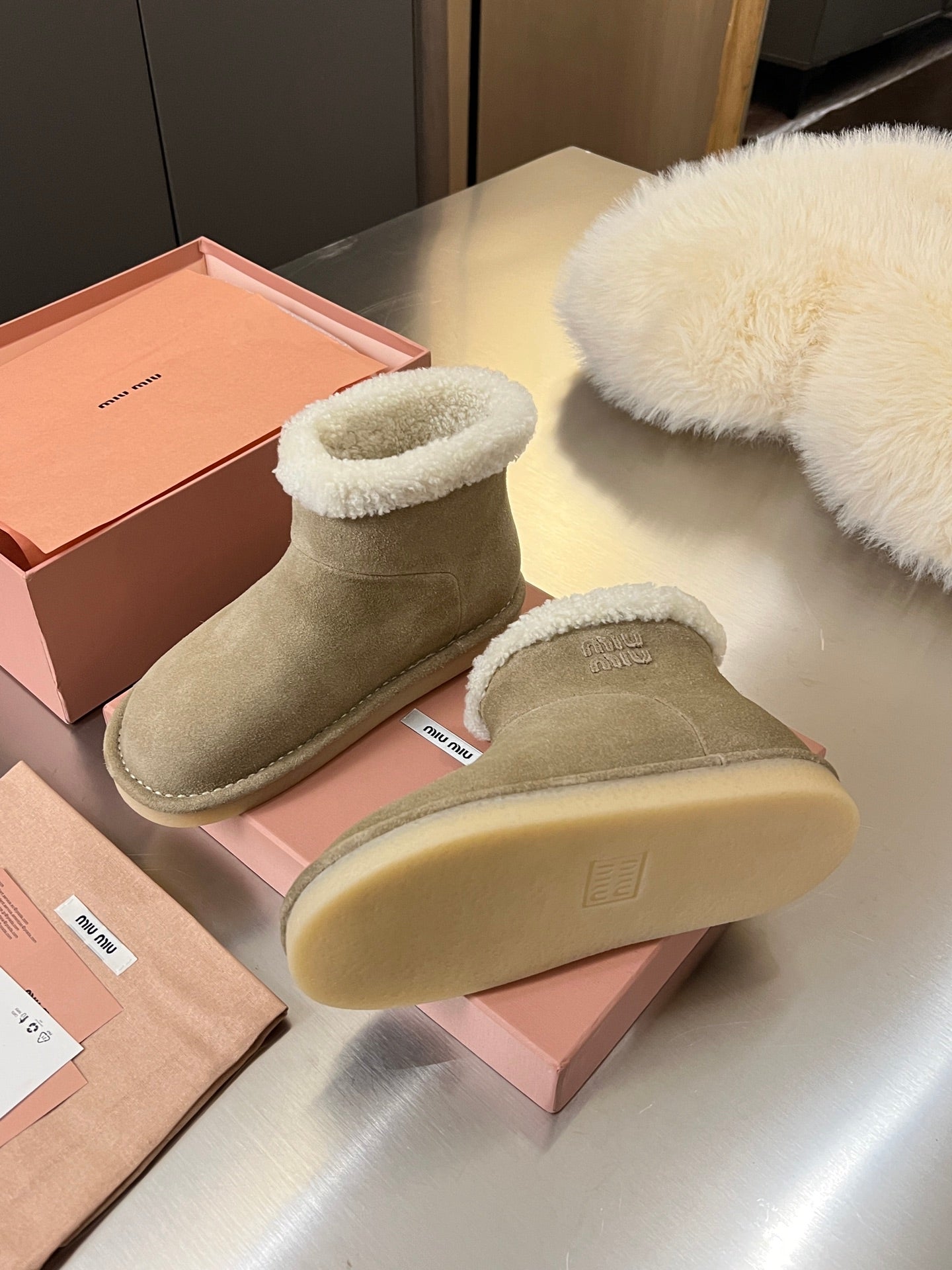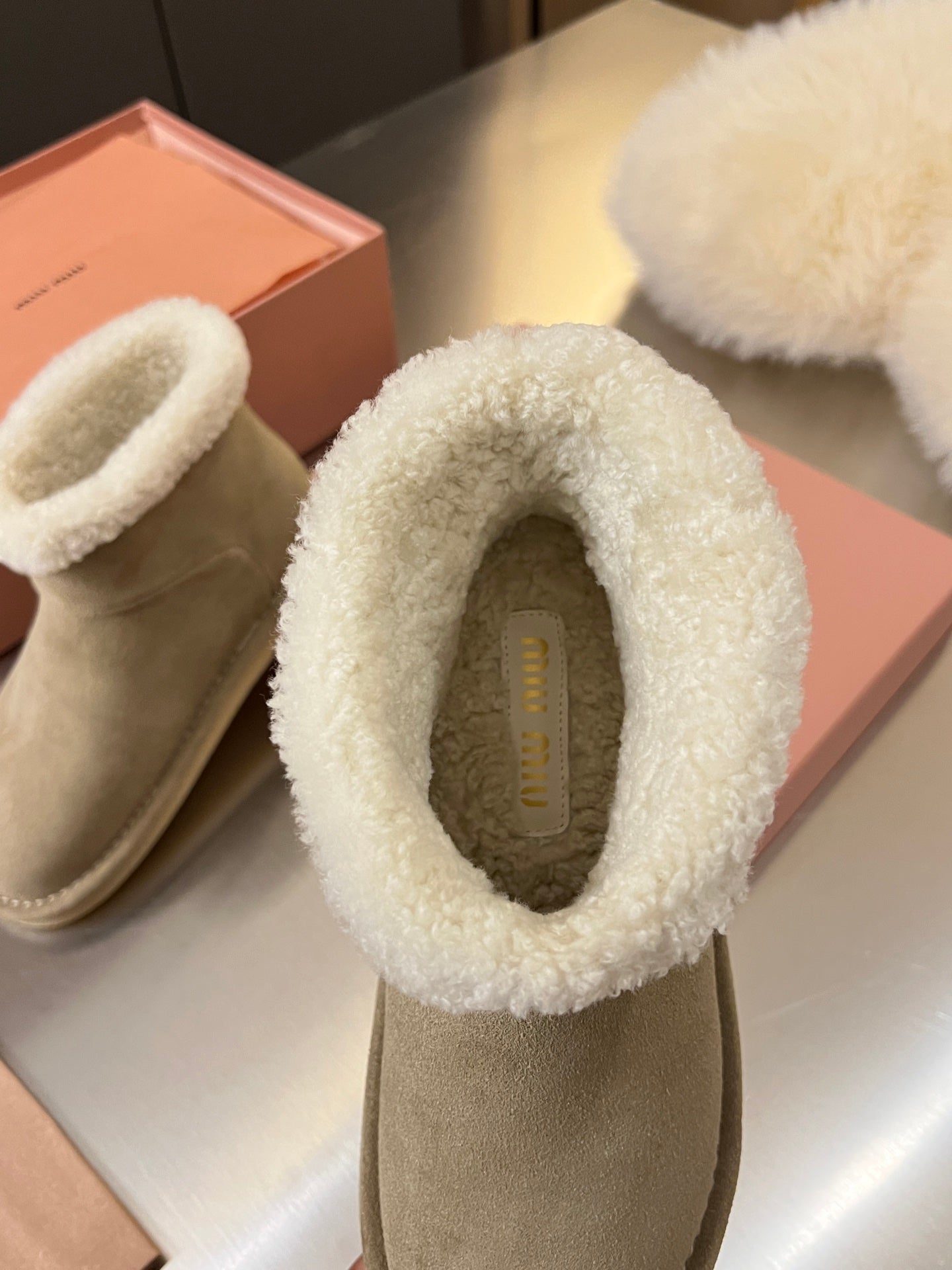 Miumiu 25 Boot Beige White Suede Wool 510221