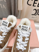 MiuMiu 25 Sneaker Light Brown White Suede Cowhide Fur 535587