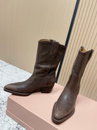 Miumiu Latest FW Western Cowboy Boots Brown Genuine Leather 533965