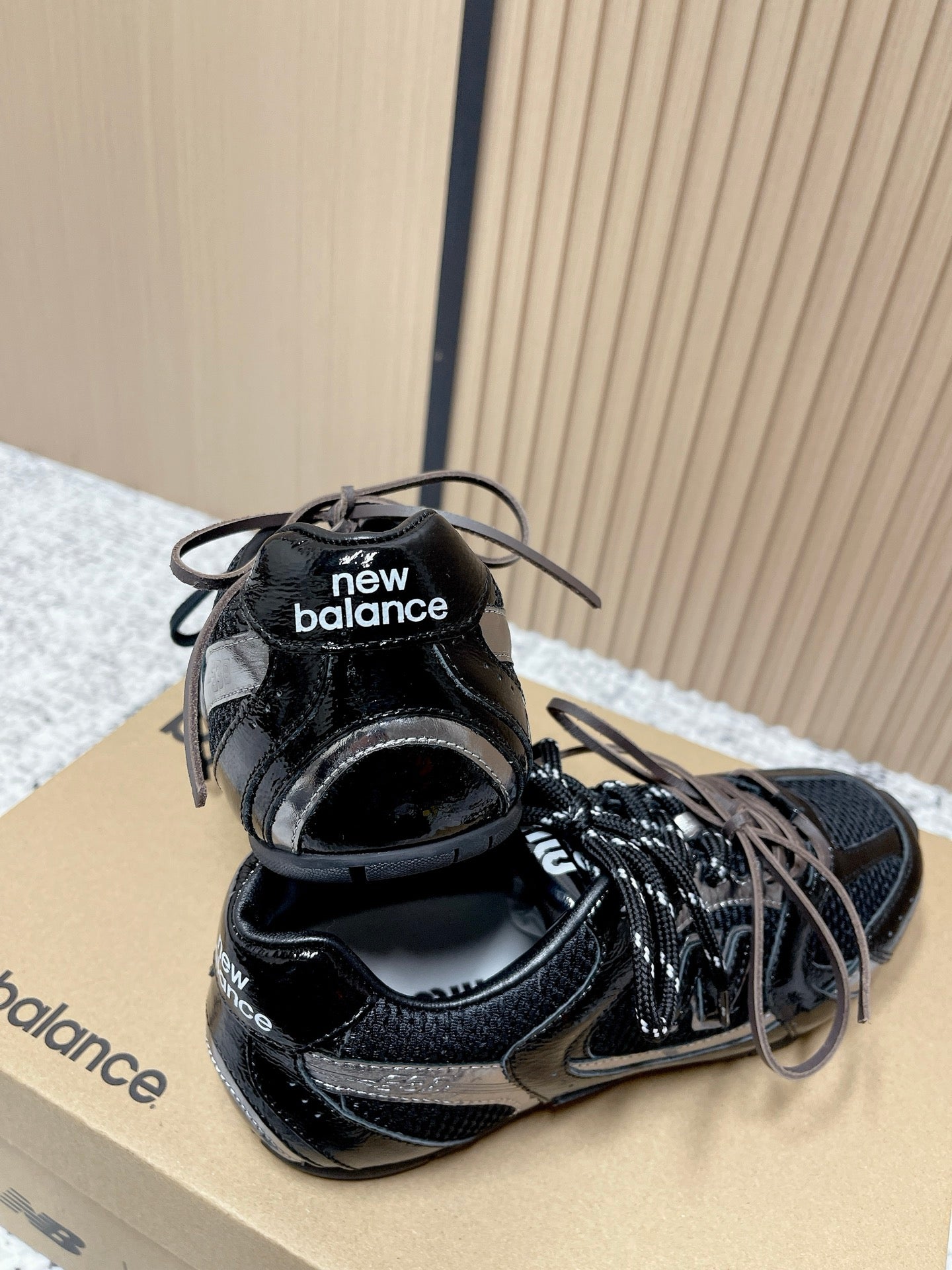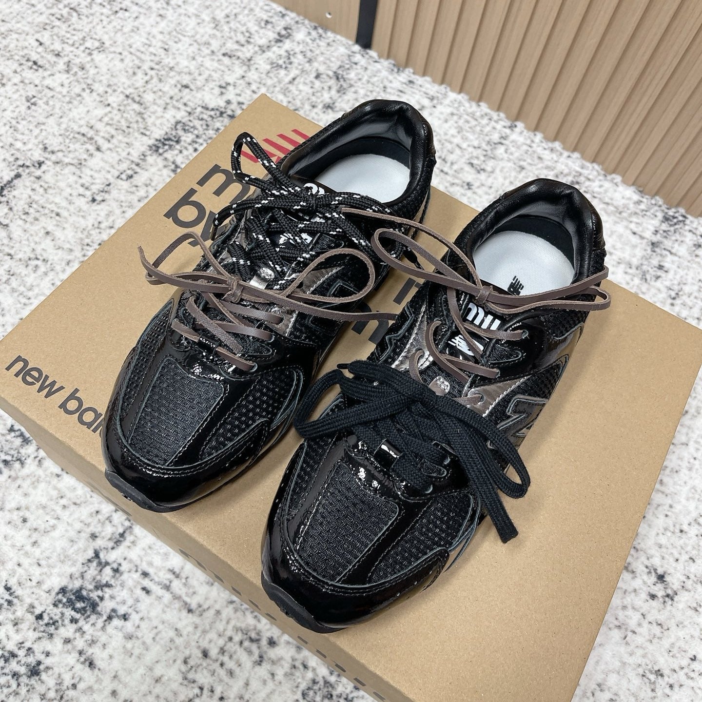MiuMiu x New Balance Casual Sneakers Black Brown Patent Leather and Mesh 533990