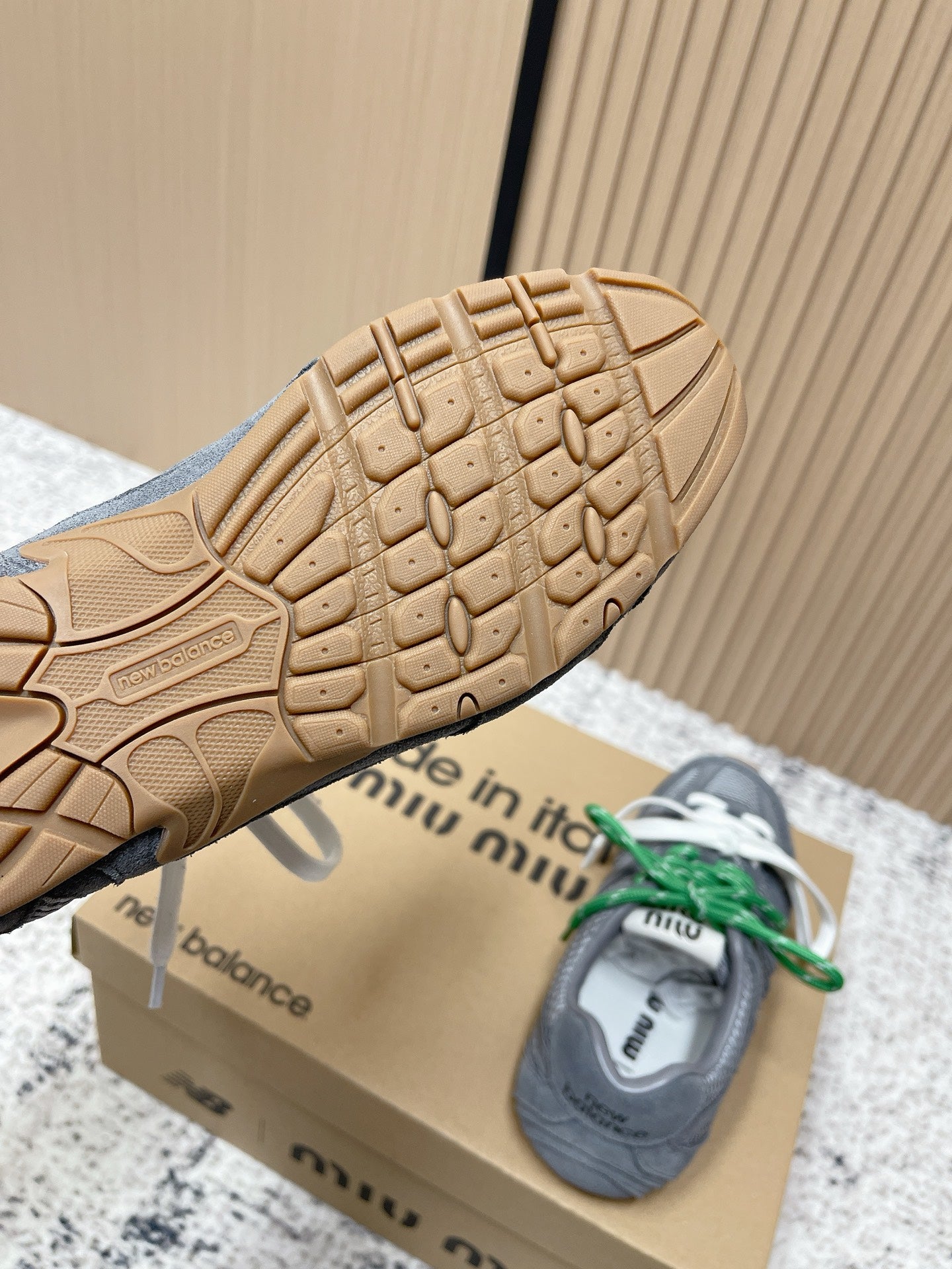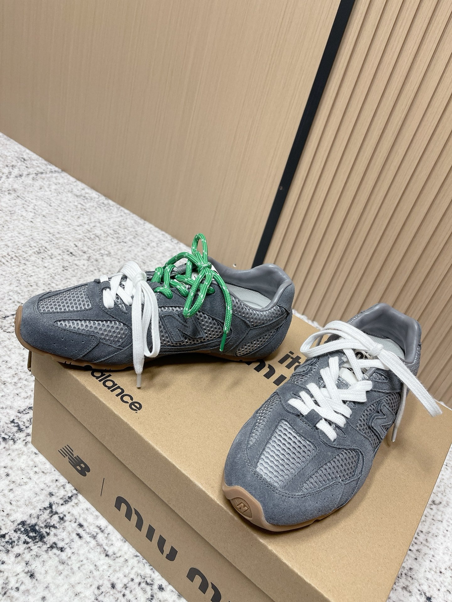 MiuMiu x New Balance Casual Sneakers Gray White Green Patent Leather and Mesh 533992