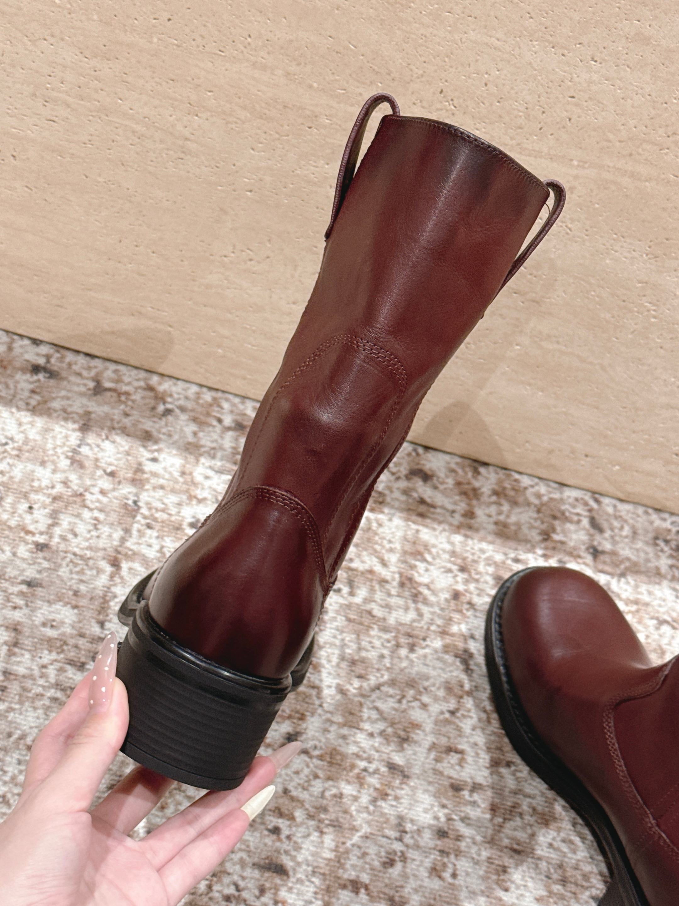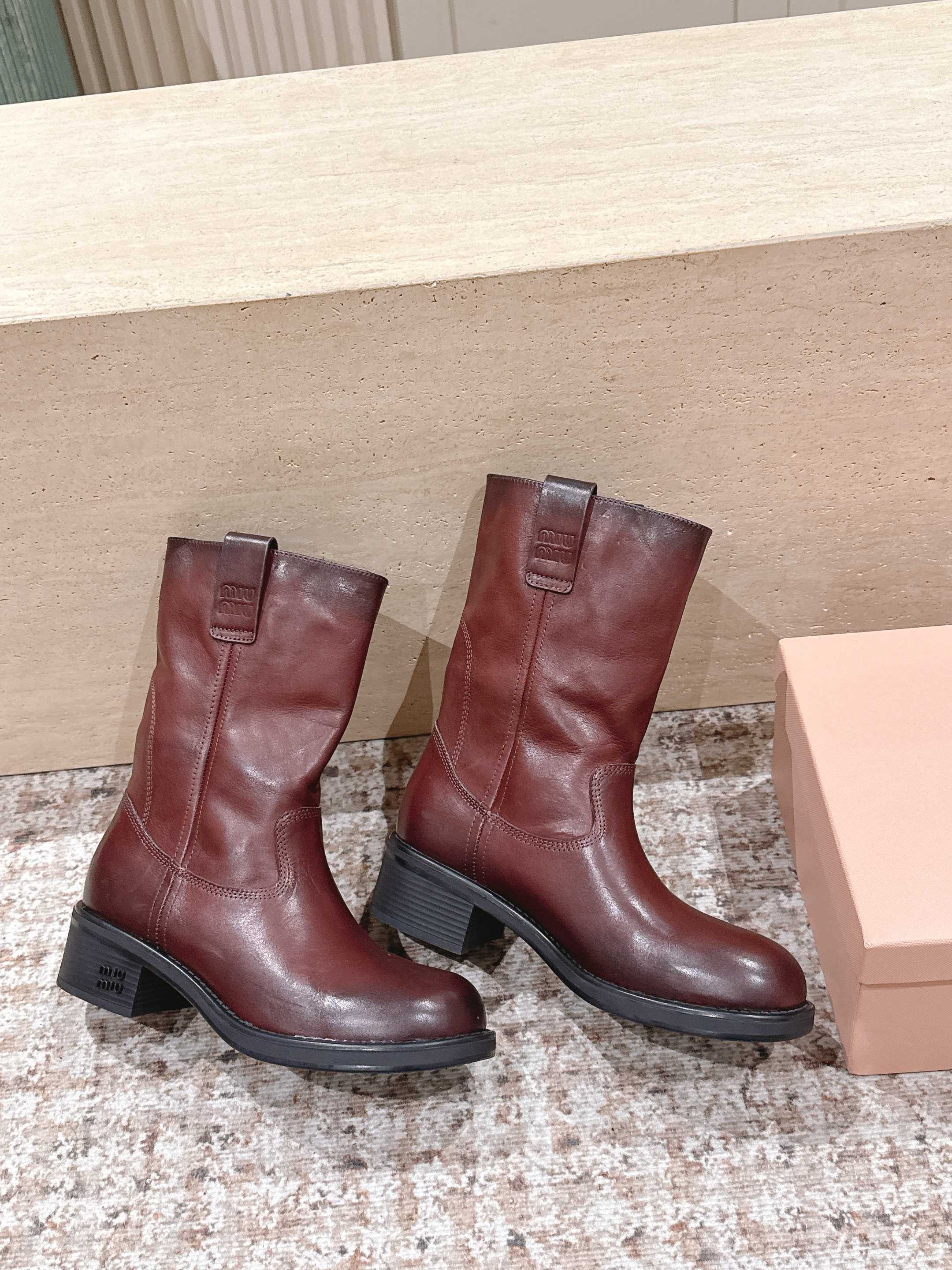 MiuMiu's 26SS Runway Slouch Boots Burgundy Leather 533042