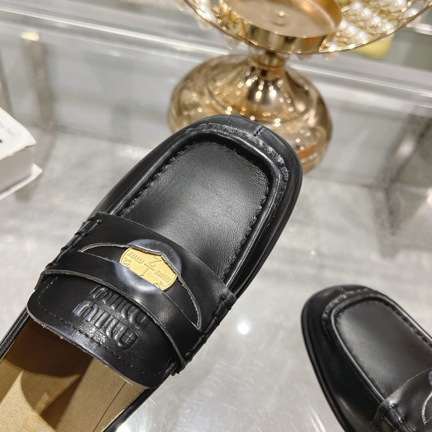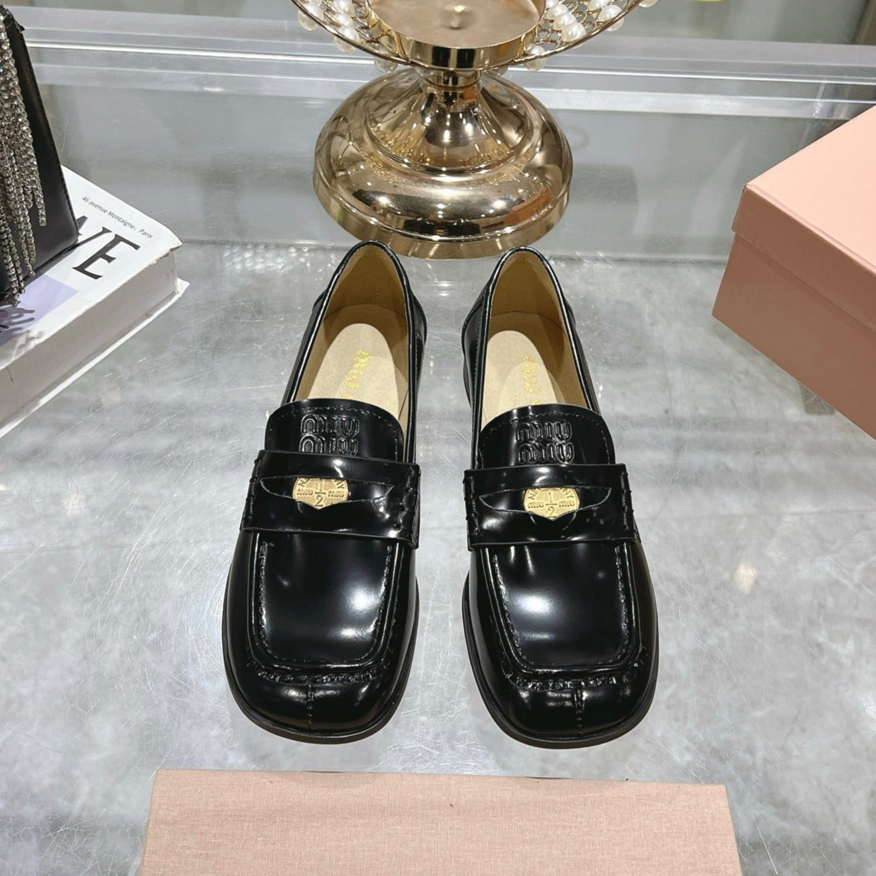 Miu Loafers Coin Shaped Thick Sole Glossy Black Cowhide