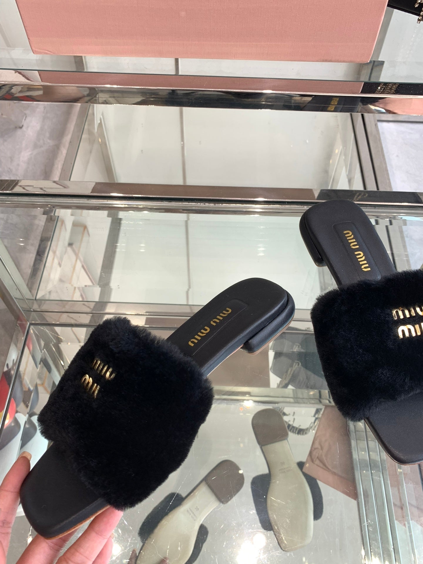 Miu Slippers Black Super Soft Wool