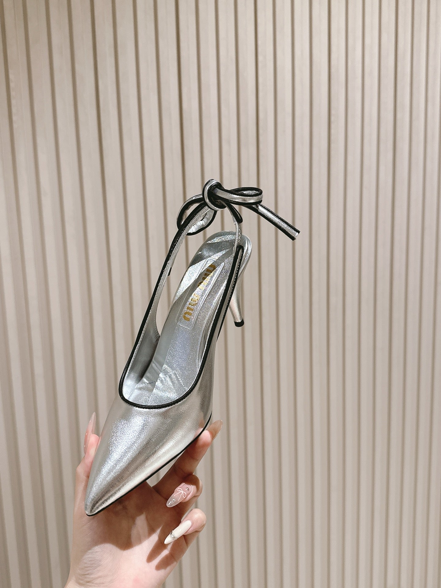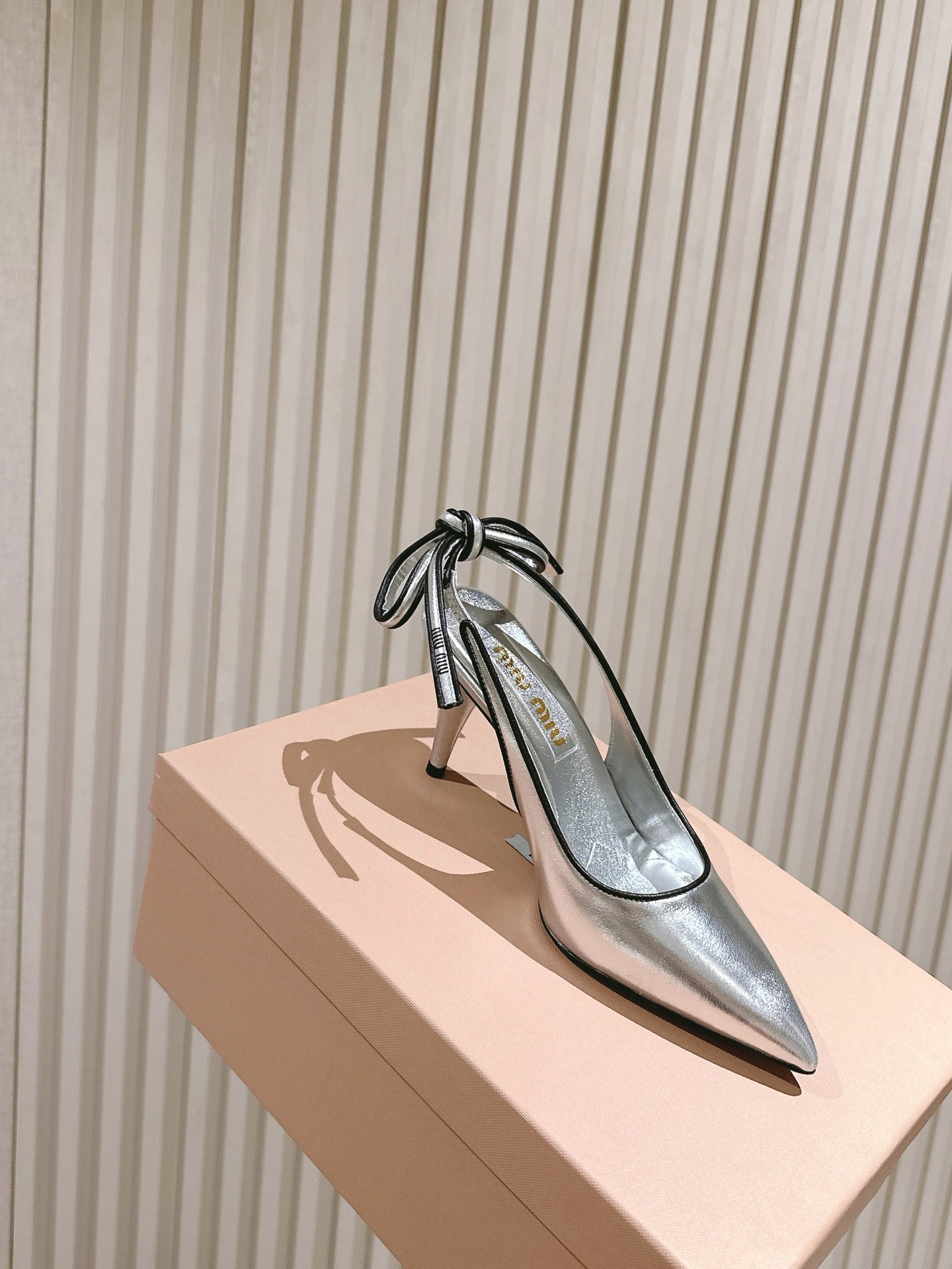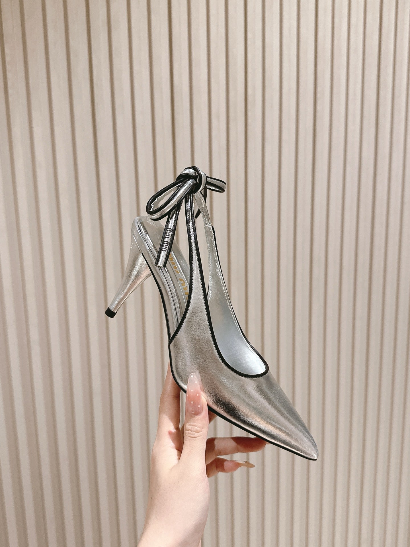 Miu Mordoré Slingback Pumps 85mm Sliver Cowhide Sheepskin 445795