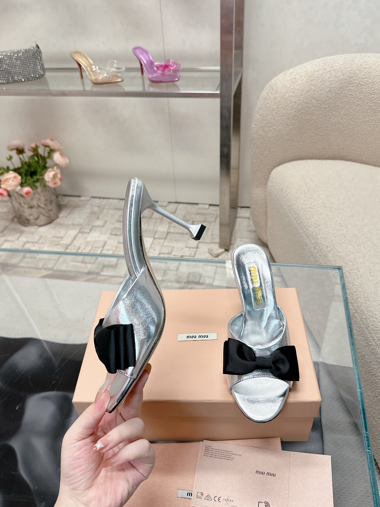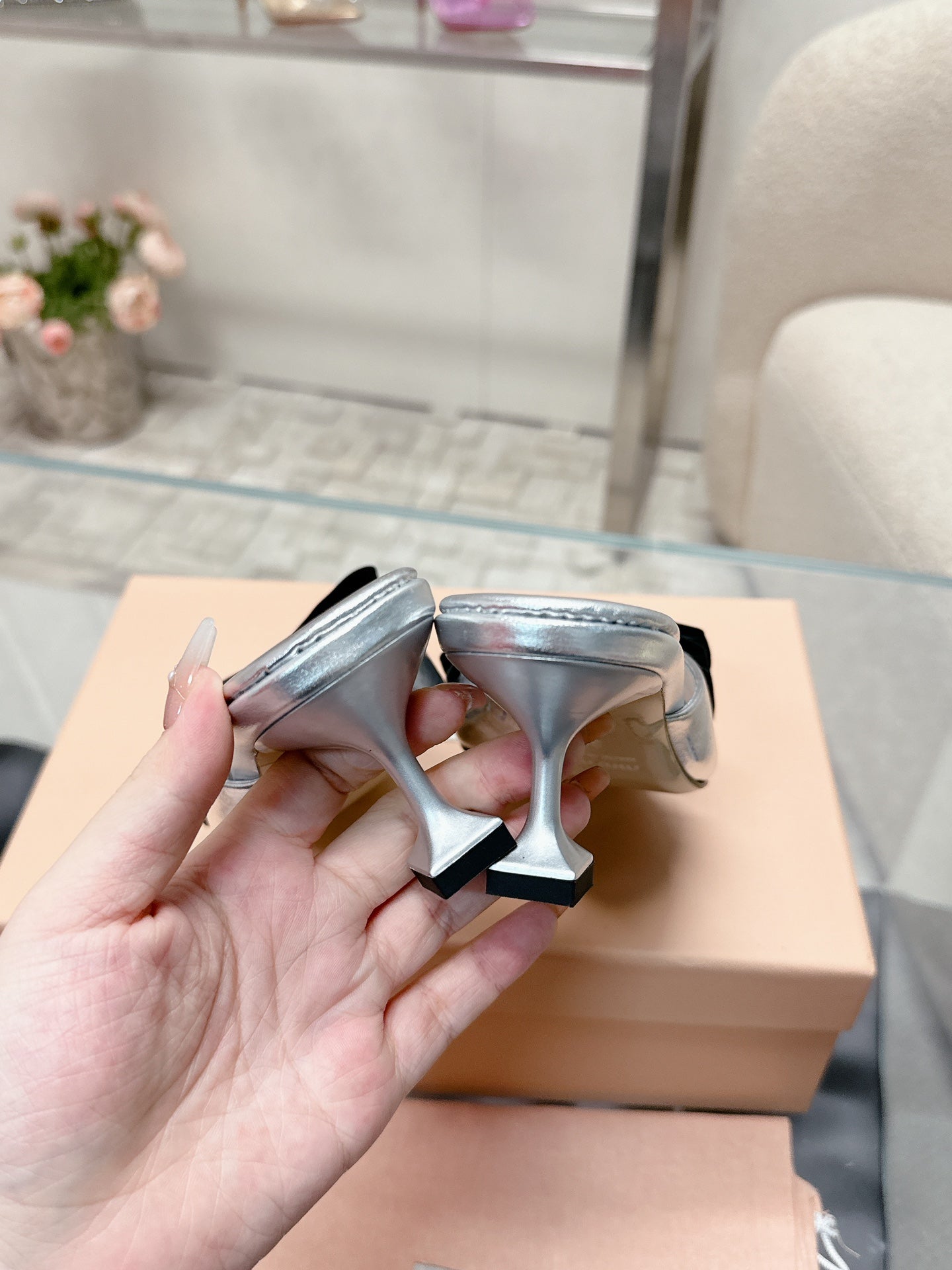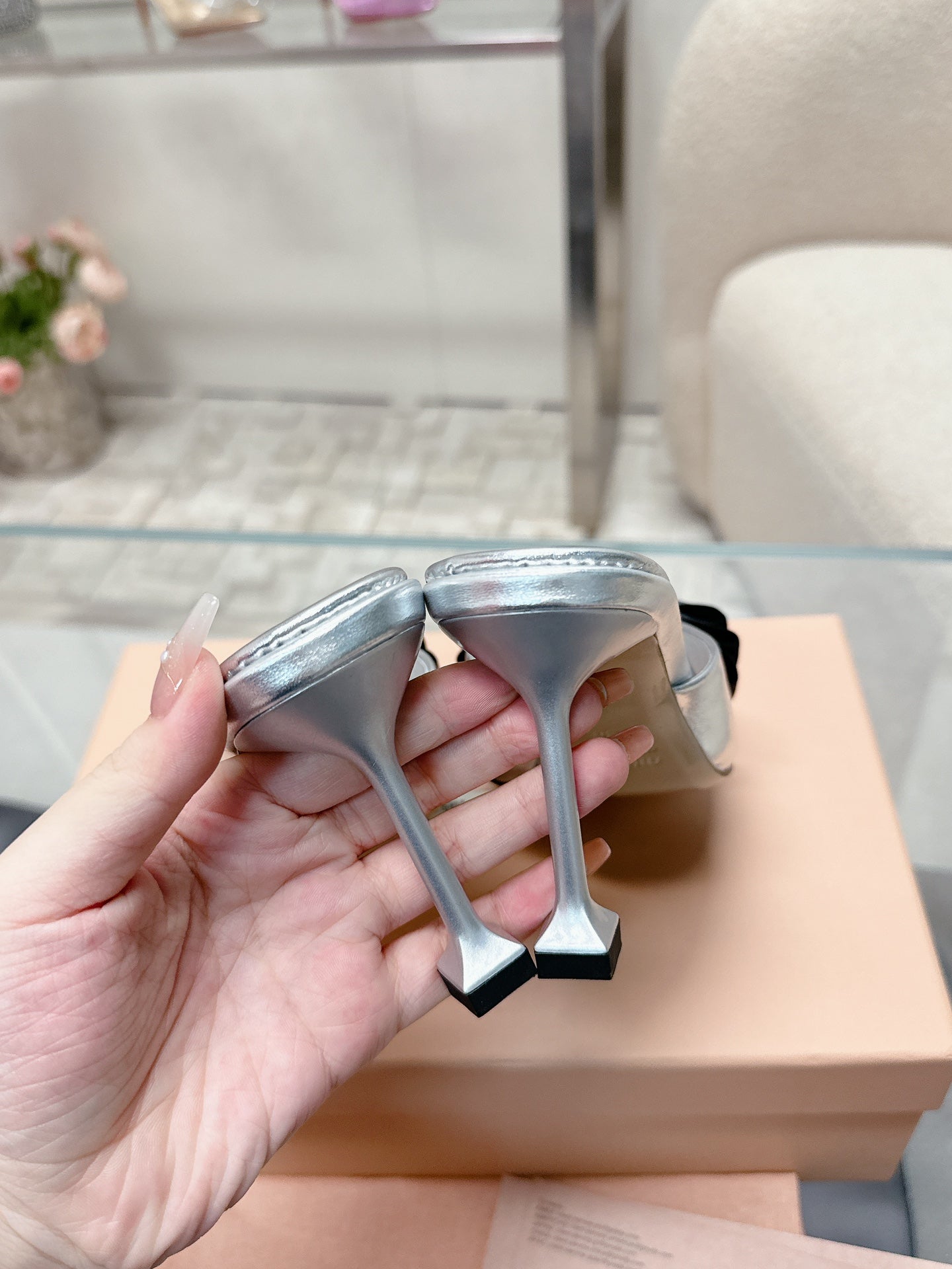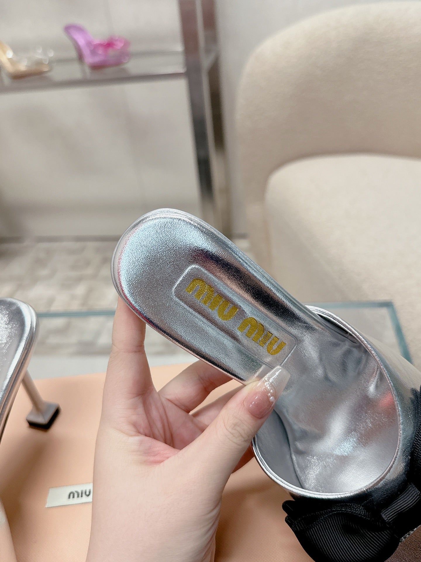Miu Mordoré Slingback Pumps 85mm Sliver Cowhide Sheepskin 445795