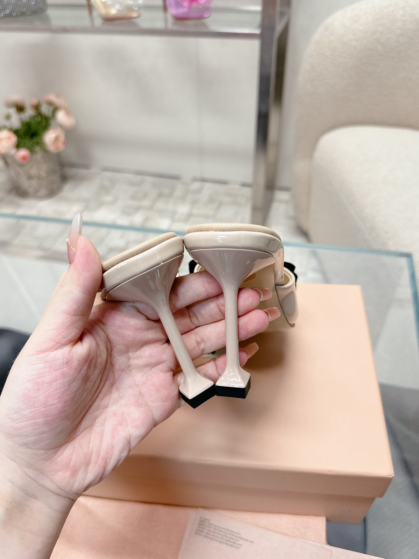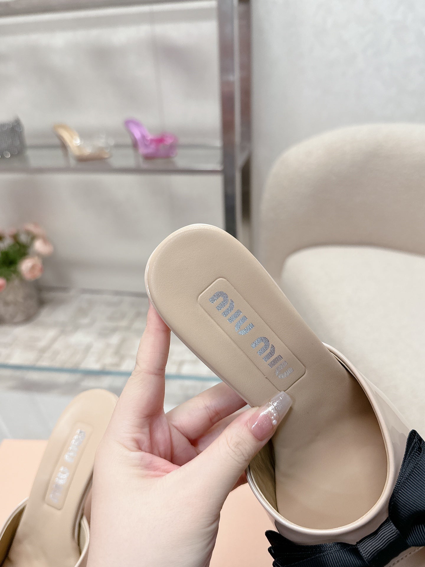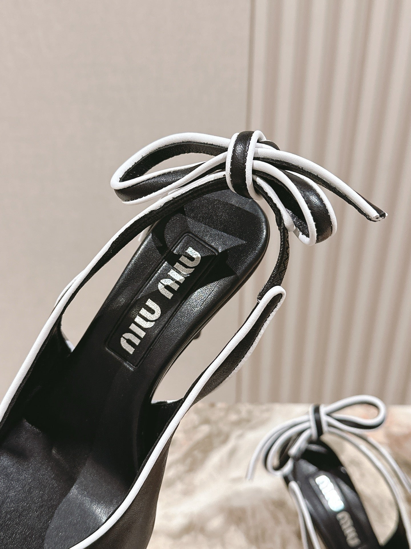 Miu x Balanc Small Bow Buckle SlingBack 45mm Beige Patent Leather 445865
