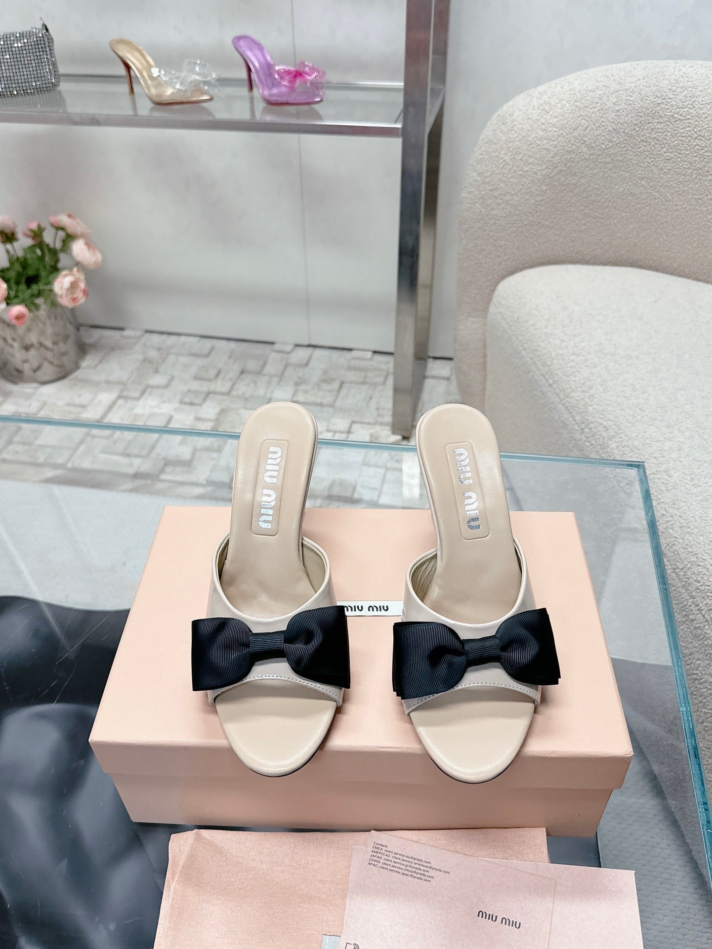 Miu Mordoré Black Bows Mules 70mm Beige Cowhide 445515