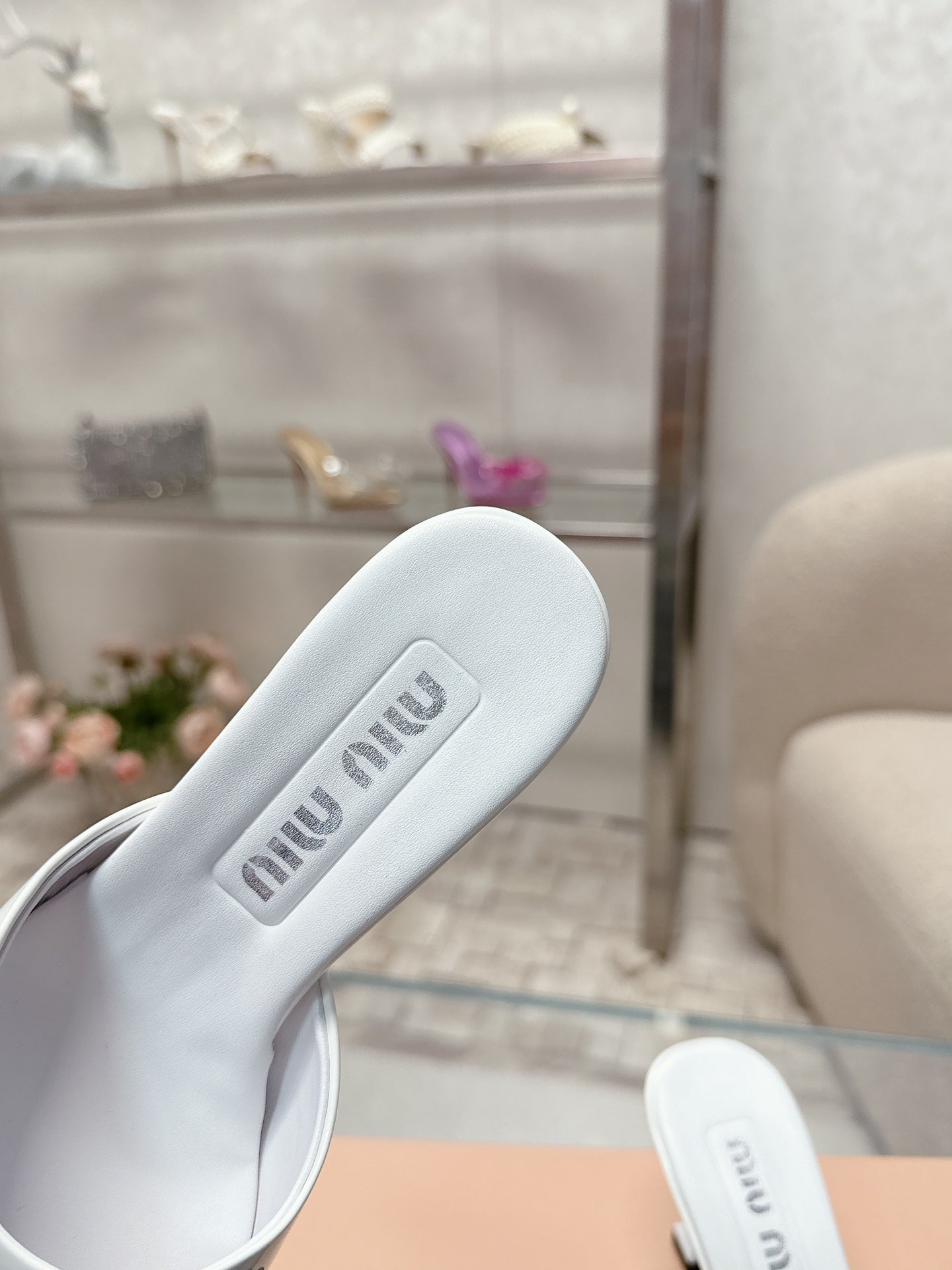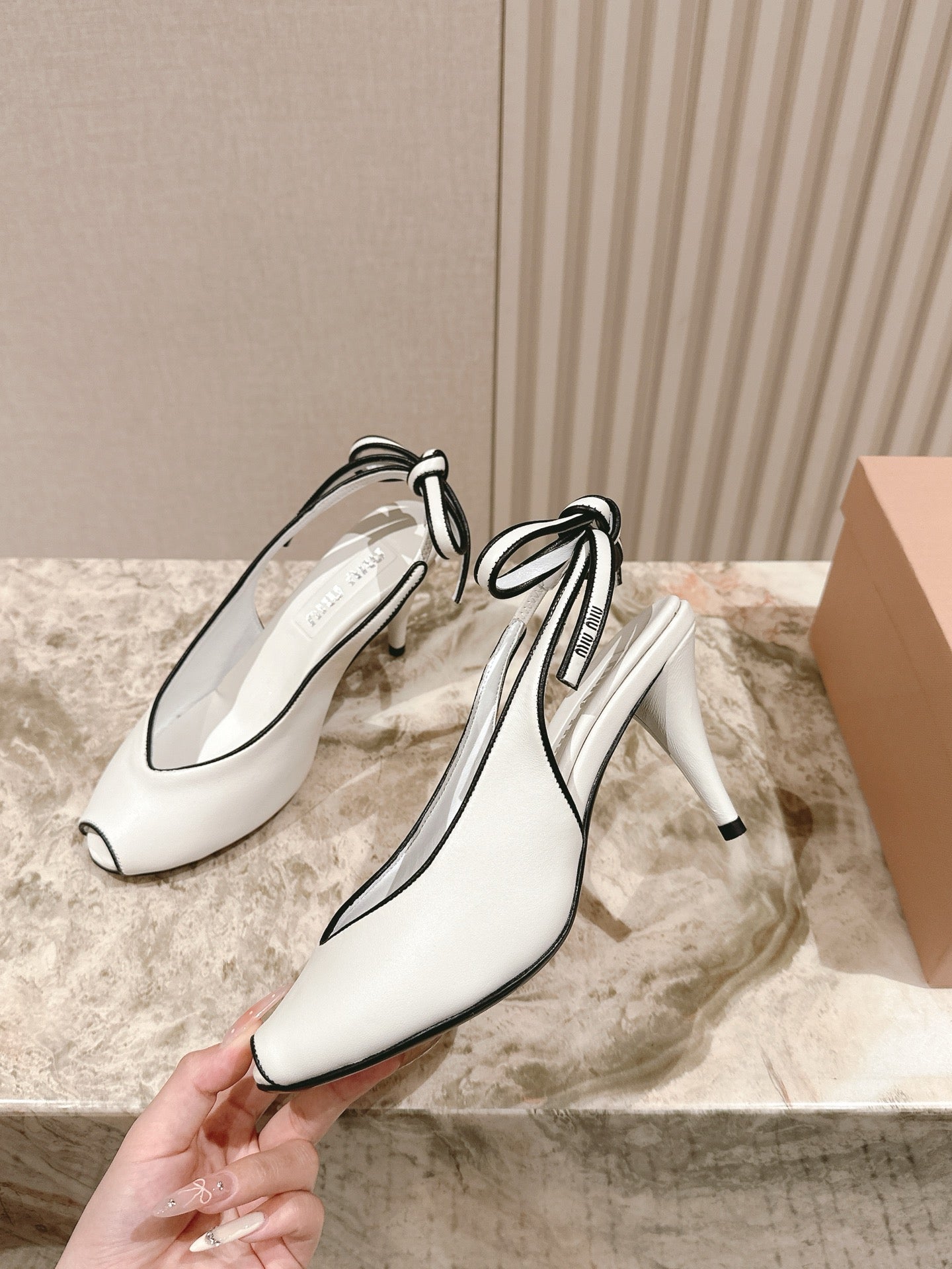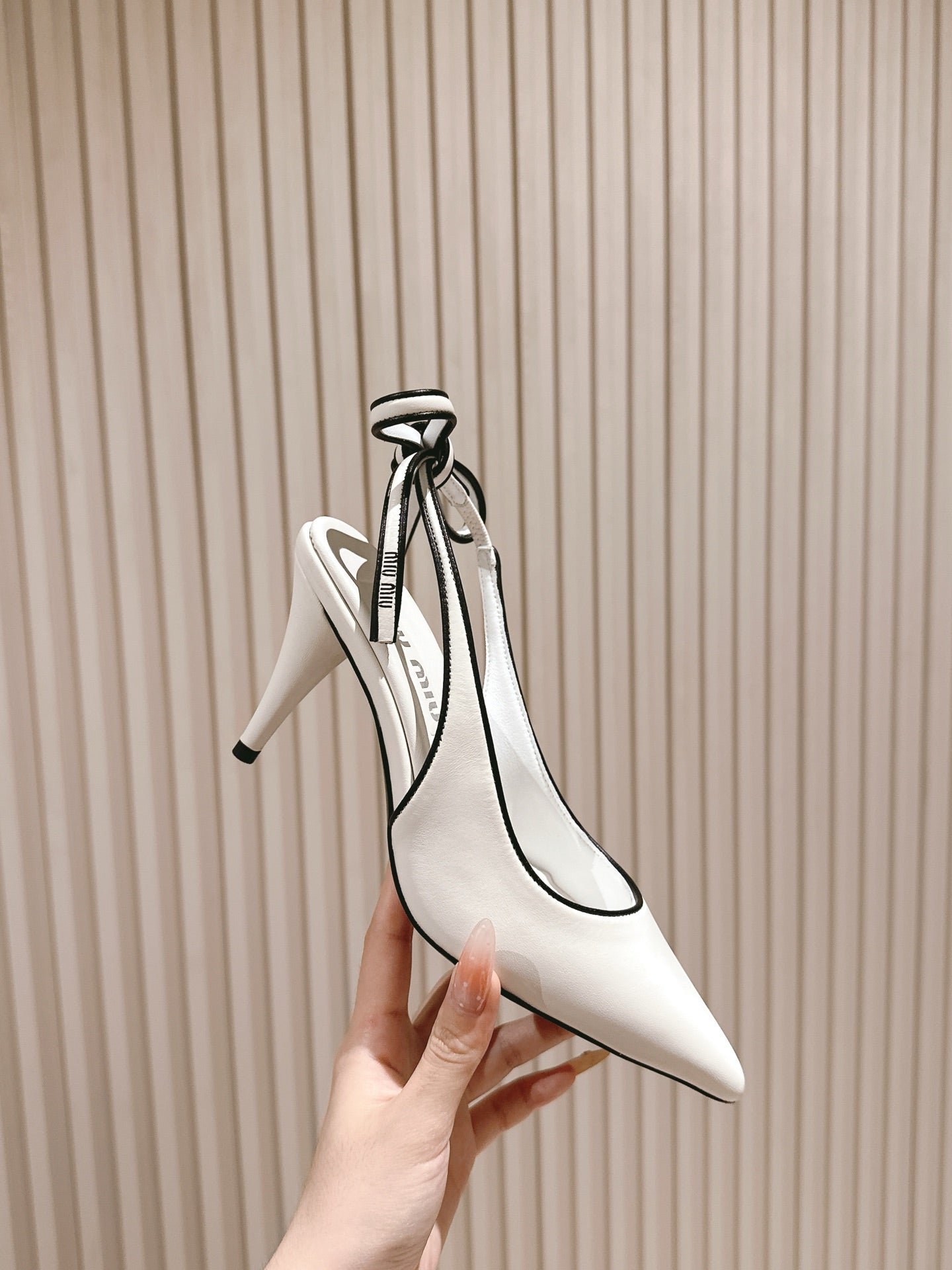 Miu Mordoré Slingback Pumps 85mm White Cowhide Sheepskin 445791